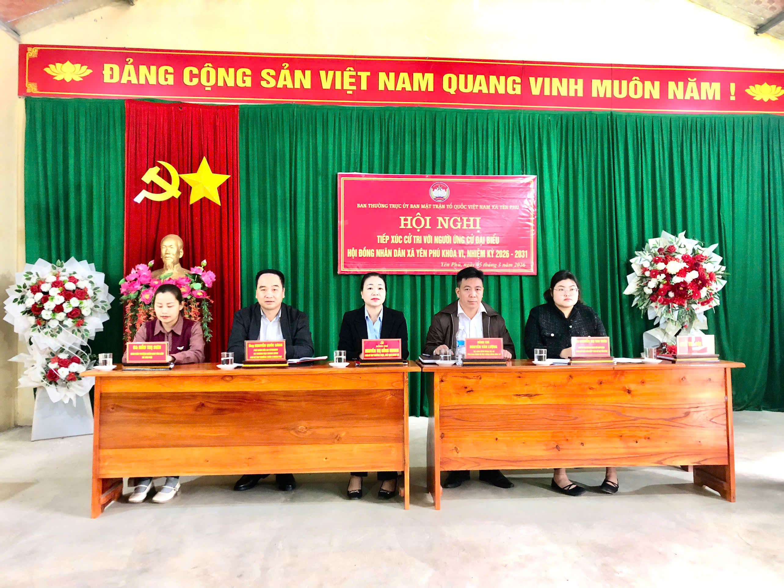 Tại Hội nghị, cử tri các thôn trên địa bàn xã Yên Phú đã được nghe chủ đại diện Ban thường trực Uỷ ban Mặt trận Tổ quốc Việt Nam xã giới thiệu tóm tắt tiểu sử các ứng cử viên. Sau đó, lần lượt các ứng cử viên đã trình bày dự kiến Chương trình hành động nếu được bầu làm đại biểu Hội đồng nhân dân xã Yên Phú khoá VI, nhiệm kỳ 2026 – 2031 và lắng nghe các ý kiến, kiến nghị của cử tri. Trong chương trình hành động, các ứng cử viên cam kết tiếp tục học tập, rèn luyện nâng cao trình độ chuyên môn, giữ mối liên hệ chặt chẽ với cử tri, thường xuyên tiếp xúc, lắng nghe tâm tư, nguyện vọng của Nhân dân; kịp thời phản ánh ý kiến cử tri đến cơ quan có thẩm quyền, cam kết thực hiện trách nhiệm của người đại biểu dân cử nếu được cử tri tín nhiệm bầu làm đại biểu Hội đồng nhân dân xã trong nhiệm kỳ tới.