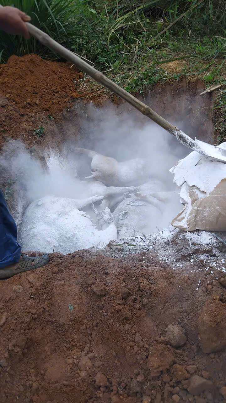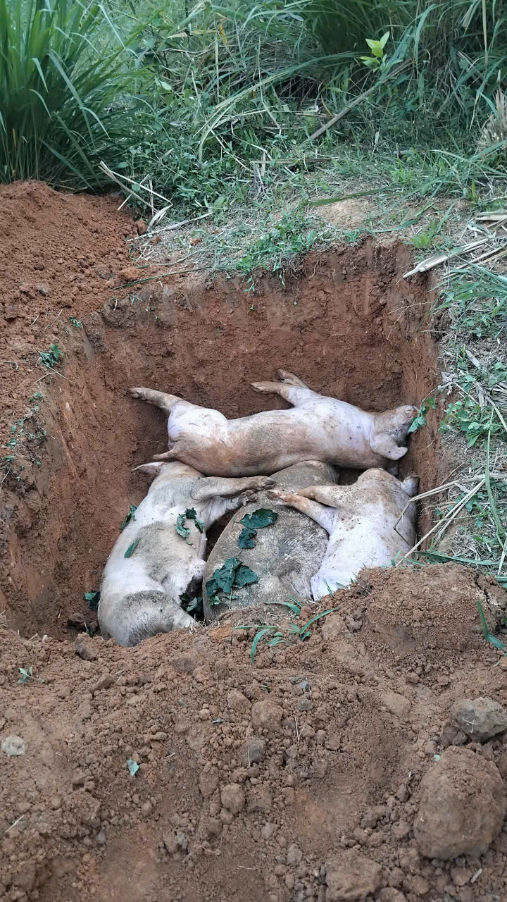 Rắc vôi bột và thực hiện chôn đối với lợn bị nhiễm bệnh/chết