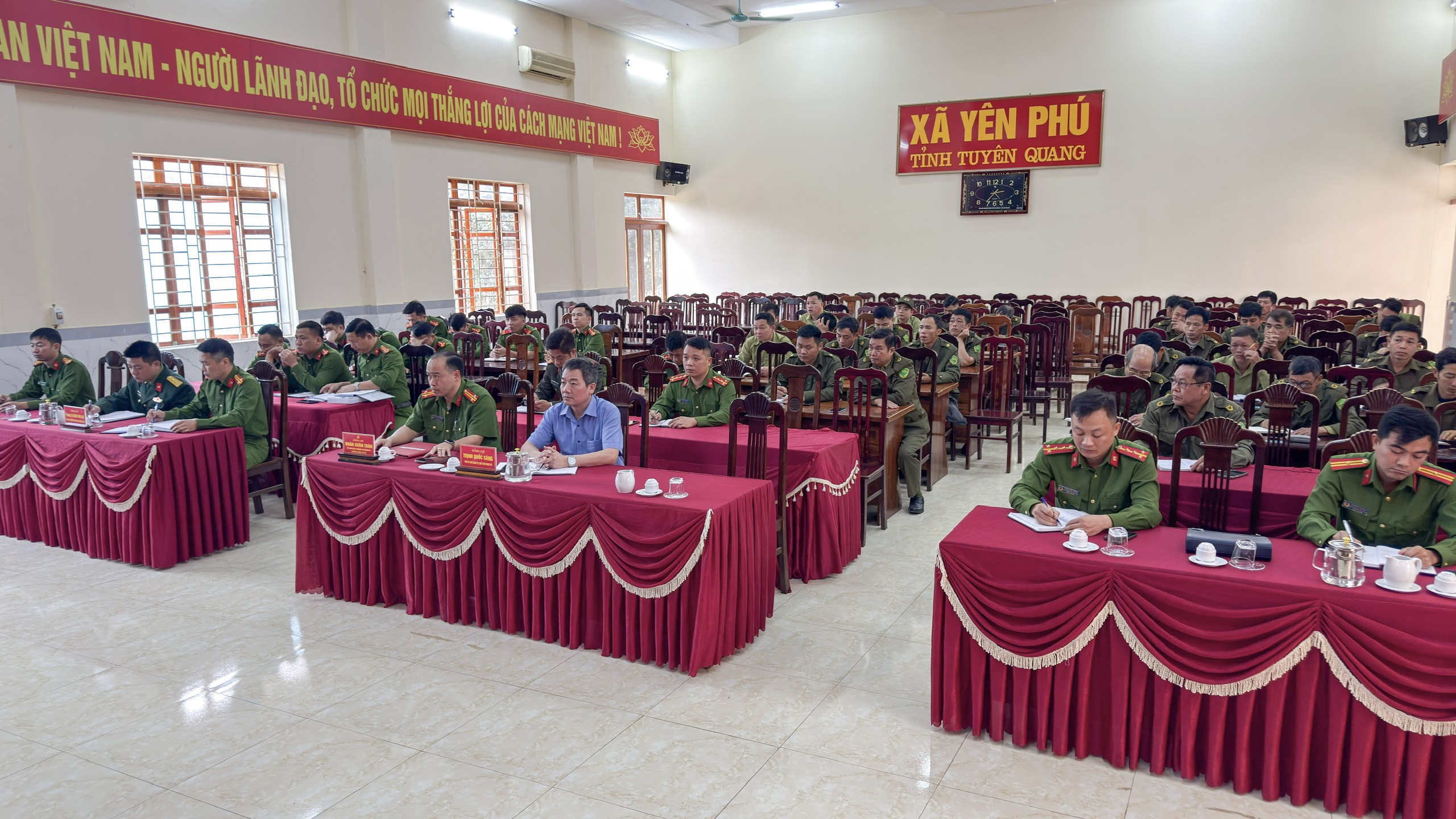 Các đồng chí cán bộ, chiến sĩ Công an, Quân sự xã và Lực lượng tham gia bảo vệ an ninh, trật tự ở cơ sở trên địa bàn tham dự đã tập trung, thẳng thắng thảo luận, trao đổi những khó khăn, vướng mắc trong công tác đảm bảo an ninh trật tự tại cơ sở, tham gia ý kiến điều chỉnh, bổ sung để hoàn thiện tối ưu nhất các kế hoạch, phương án bảo đảm an ninh trật tự, dự kiến các tình huống phức tạp phát sinh và hướng giải quyết, xử lý.