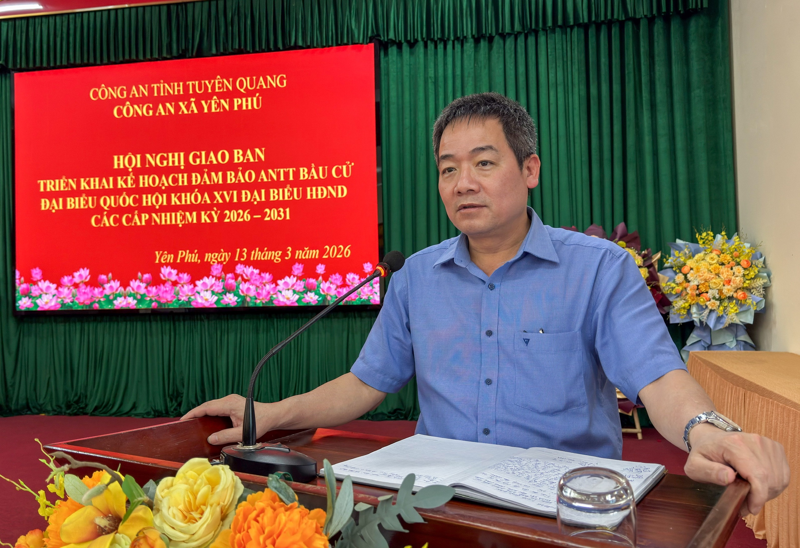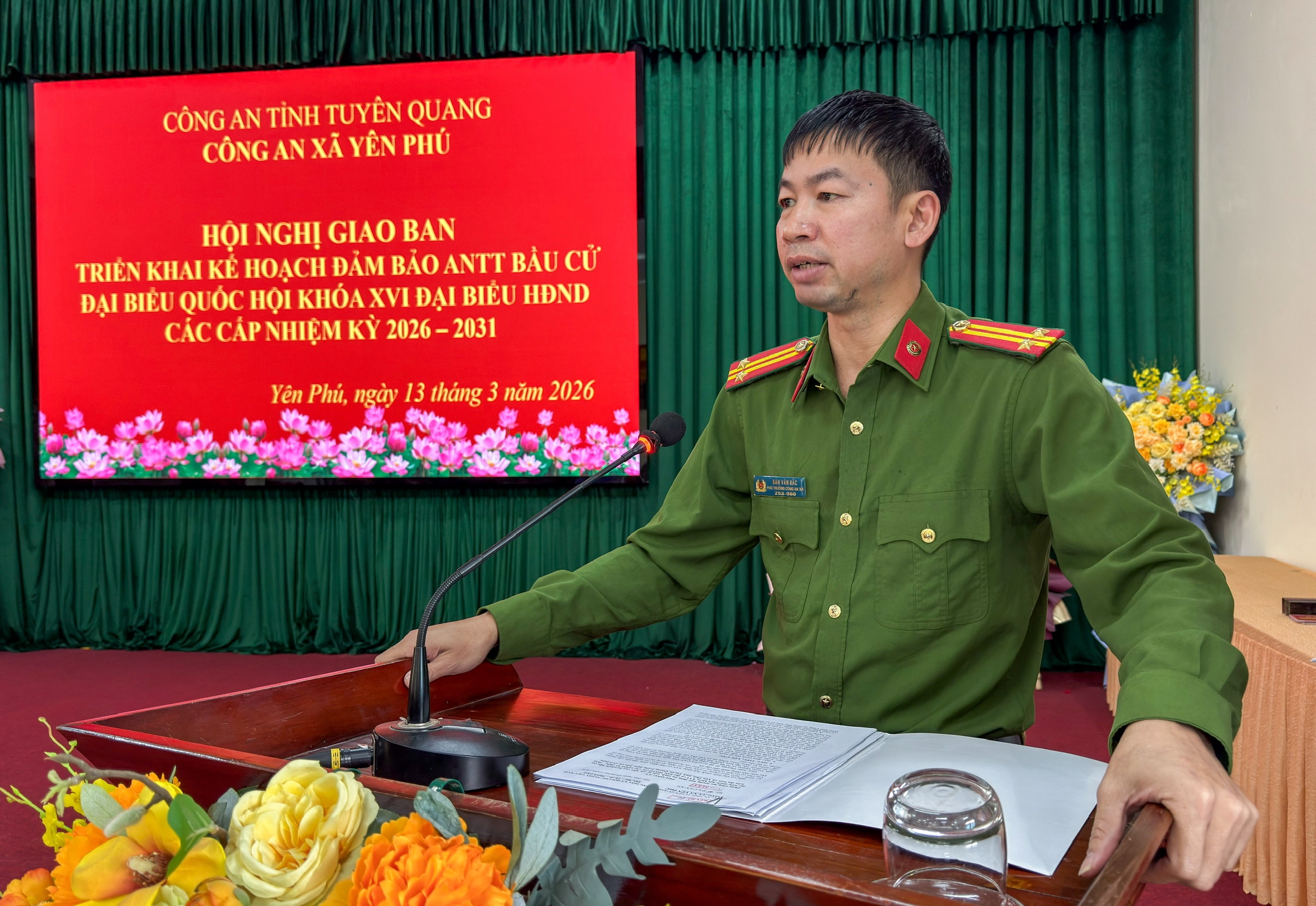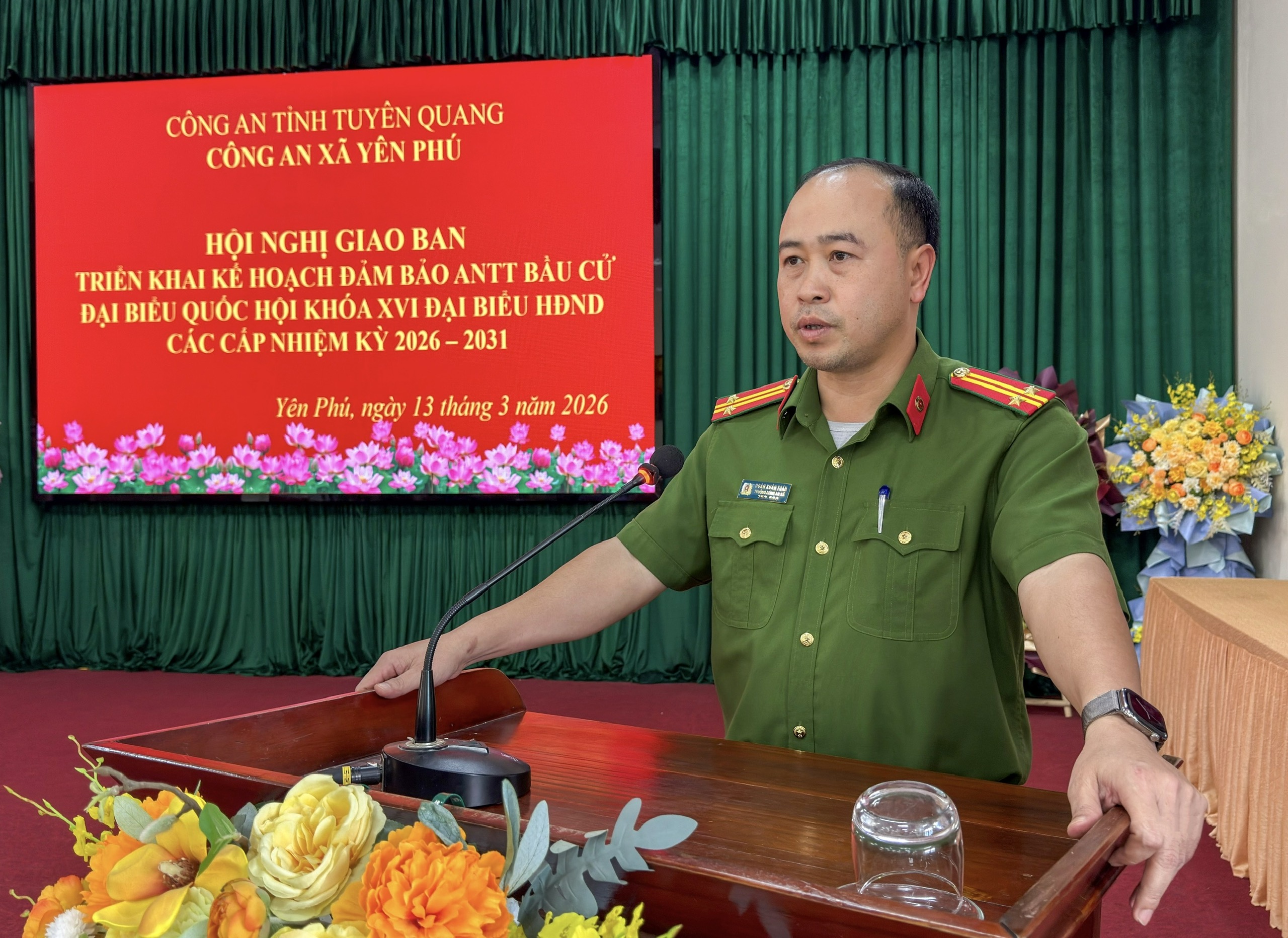 Tại hội nghị, đồng chí Đoàn Xuân Toàn, Trưởng Công an xã đã quán triệt các nội dung chỉ đạo của cấp trên về công tác bảo đảm an ninh, trật tự phục vụ bầu cử; đồng thời phân tích, đánh giá tình hình an ninh chính trị, trật tự an toàn xã hội trên địa bàn, nhận diện các yếu tố có thể ảnh hưởng đến quá trình tổ chức bầu cử. Trên cơ sở đó, Công an xã đã triển khai các nhiệm vụ trọng tâm như: tăng cường công tác nắm tình hình, quản lý địa bàn, quản lý đối tượng; chủ động phát hiện, đấu tranh, ngăn chặn kịp thời các hành vi vi phạm pháp luật, các luận điệu sai trái, xuyên tạc liên quan đến công tác bầu cử; đẩy mạnh công tác tuyên truyền pháp luật, nâng cao ý thức chấp hành pháp luật của Nhân dân; bảo đảm an ninh, an toàn tại các khu vực niêm yết danh sách cử tri, các điểm bỏ phiếu và các hoạt động liên quan đến bầu cử; lập ra các tổ công tác và phân công nhiệm vụ cụ thể, bám sát từng điểm bầu cử, chuẩn bị sẵn sàng các phương án dự phòng, kiên quyết xử lý mọi tình huống phát sinh, phối hợp chặt chẽ với các tổ bầu cử không để bị động, bất ngờ.
