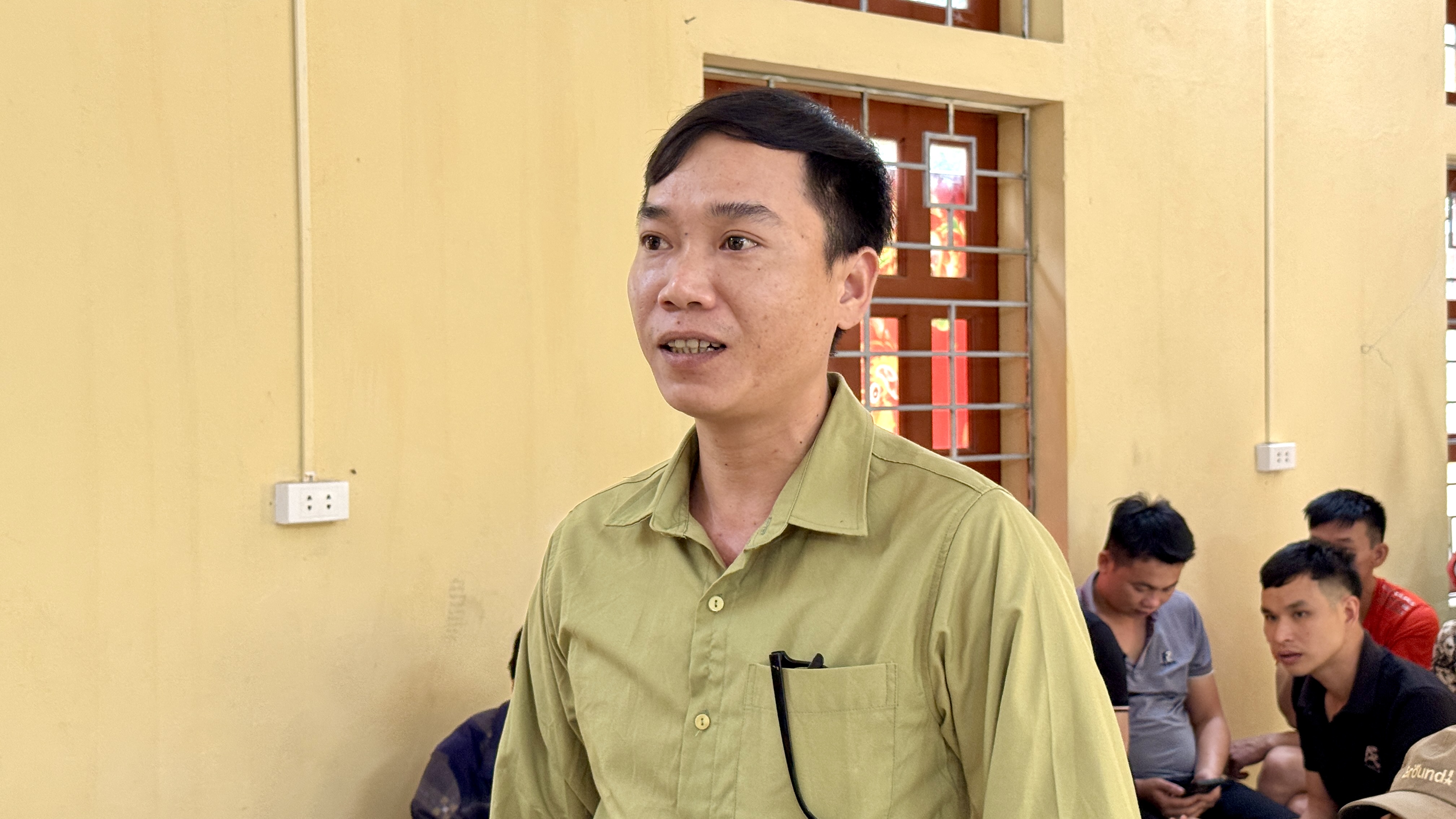 Đồng chí Vũ Văn Thịnh, Phó Chủ tịch UBND xã phát biểu tại hội nghị