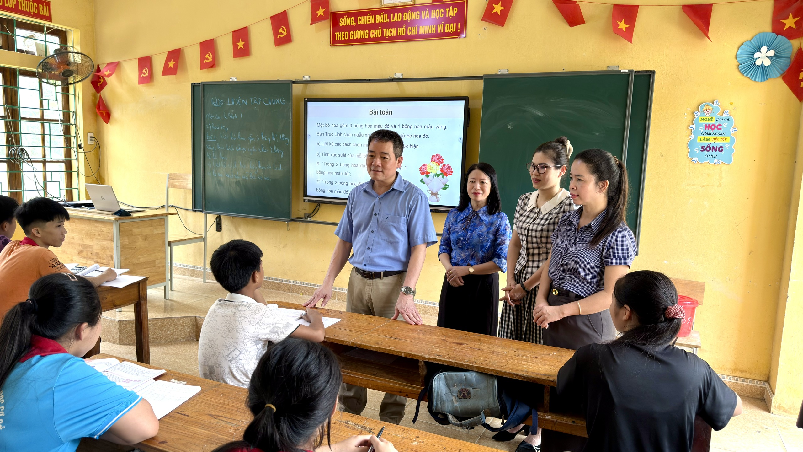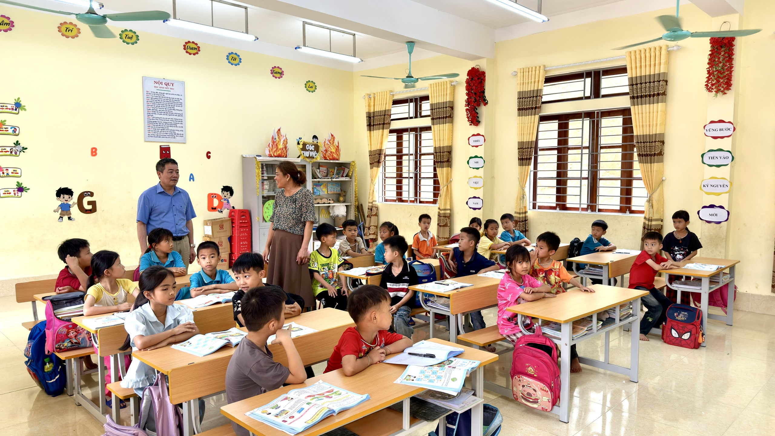 Đồng chí Trịnh Quốc Sáng, Chủ tịch UBND xã thăm khối tiểu học tại trường Tiểu học và Trung học cơ sở Yên Lâm