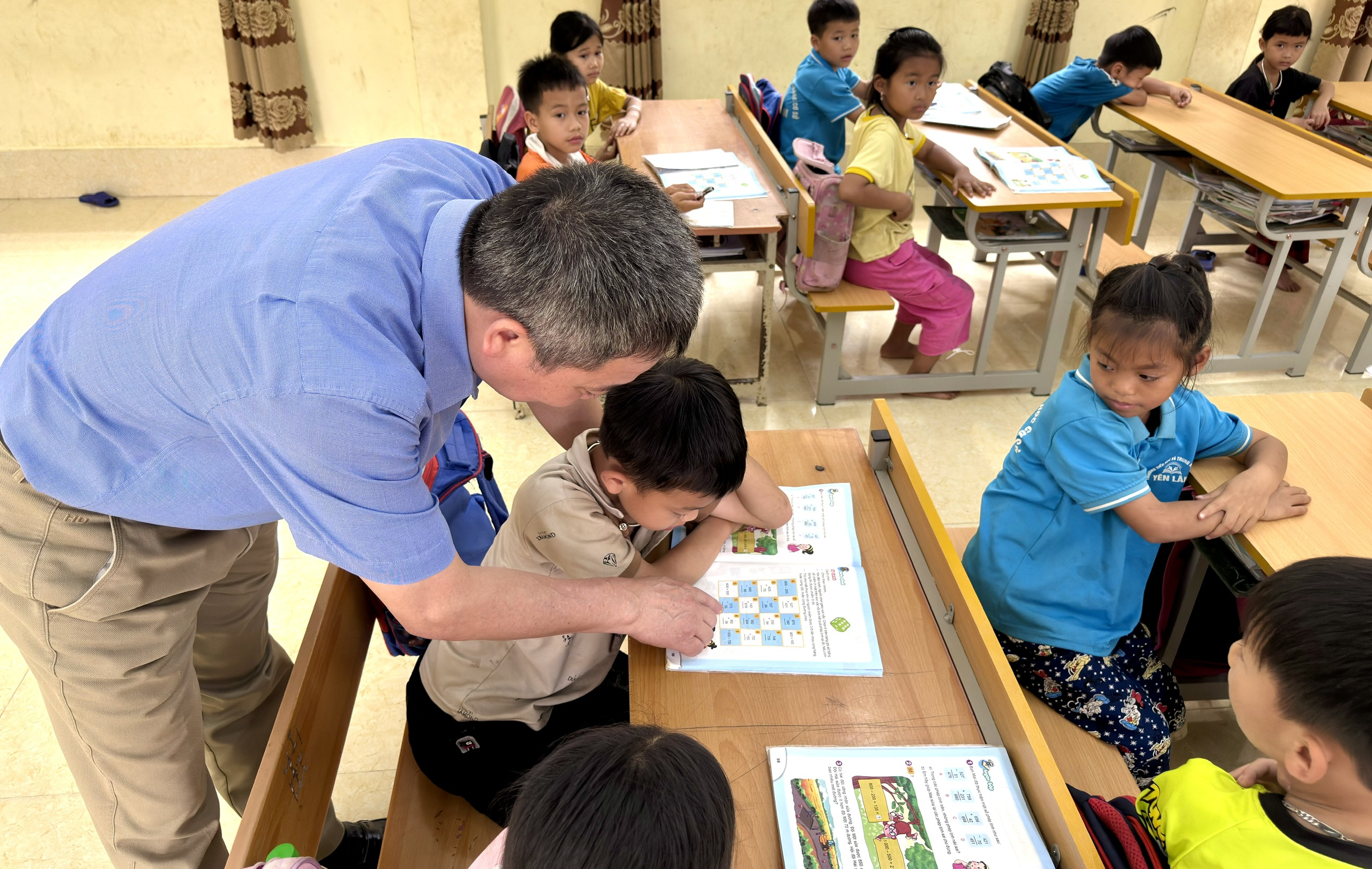 Nhân dịp này, đồng chí Trịnh Quốc Sáng, Chủ tịch UBND xã cũng đã tới thăm trường Tiểu học và Trung học cơ sở Yên Lâm, trực tiếp kiểm tra tình hình học tập.
