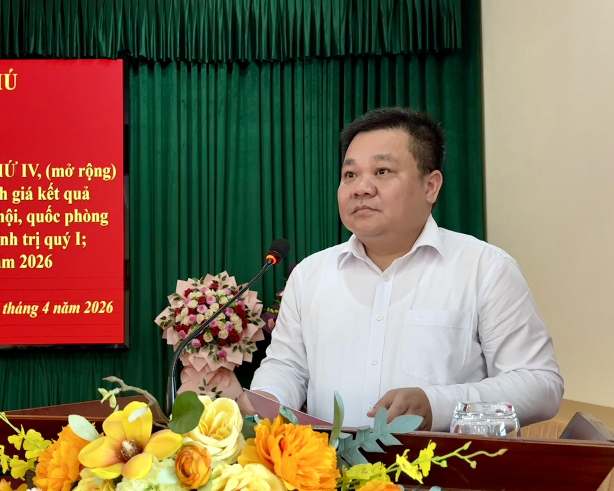 Đồng chí Bàn Xuân Thủy, Trưởng Ban xây dựng Đảng thông tin đến hội nghị tình hình thời sự trong Đảng quý I năm 2026
