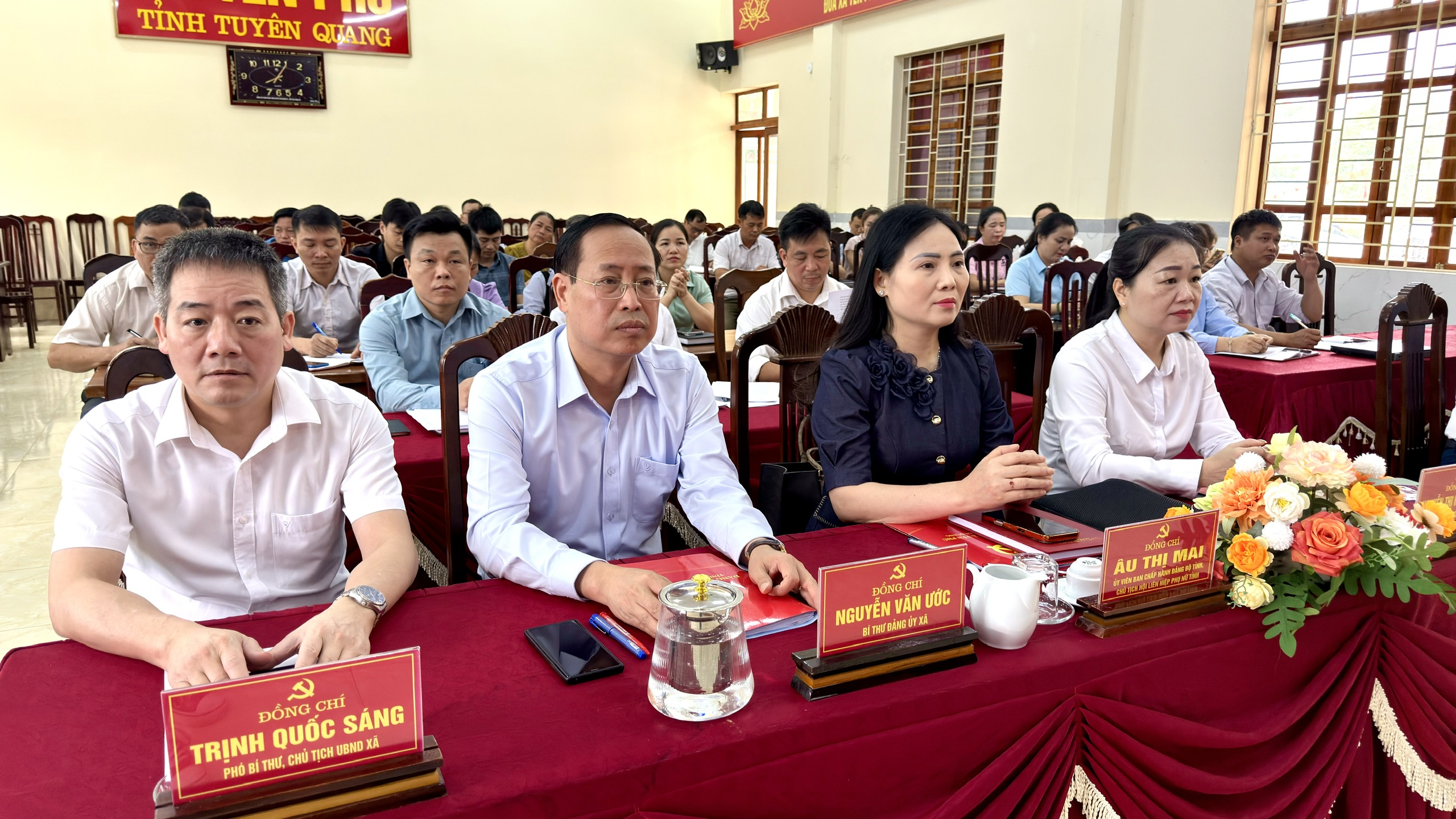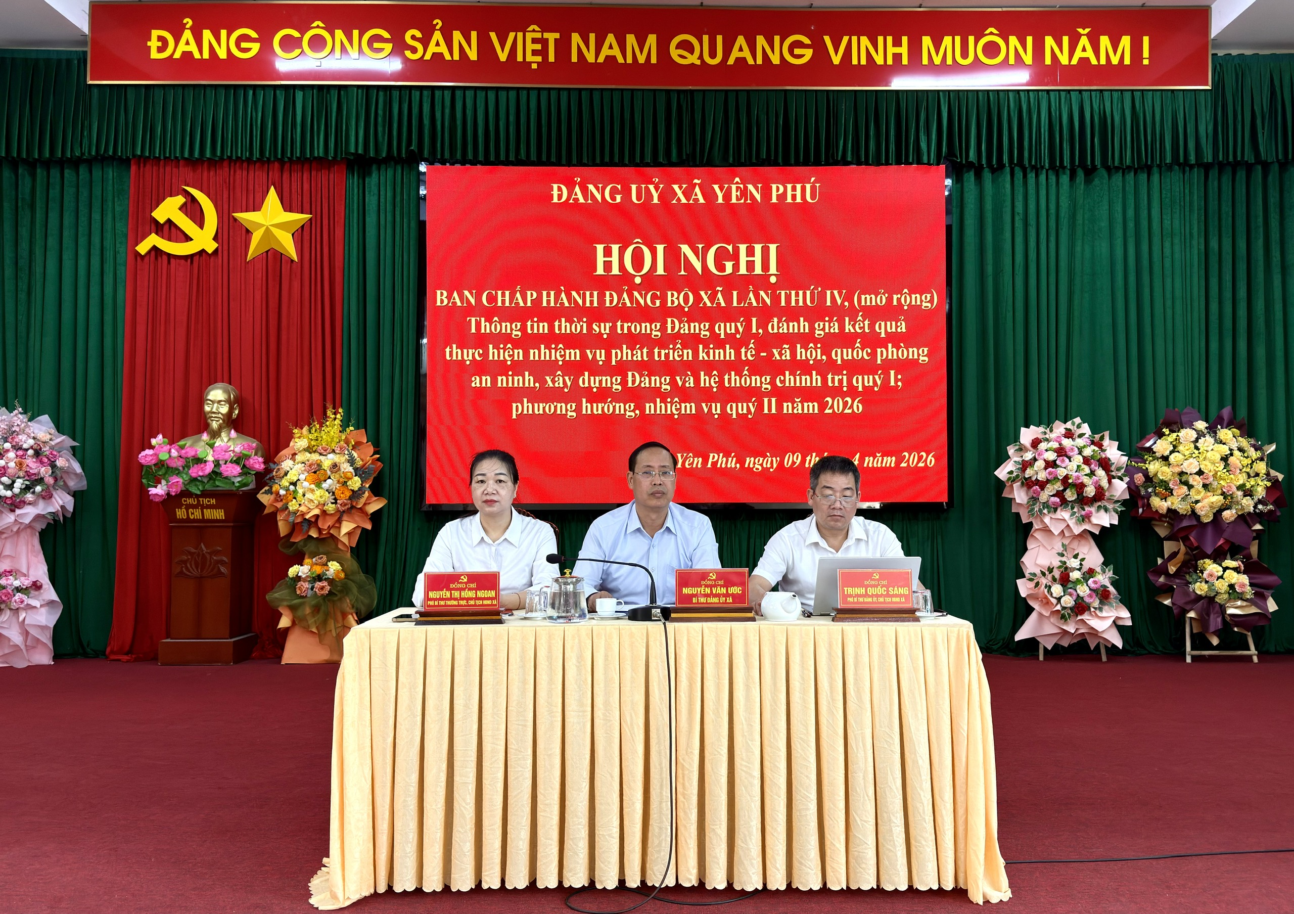 Phát biểu bế mạc hội nghị, đồng chí Nguyễn Văn Ước, Bí thư Đảng ủy xã đề nghị cấp ủy, chính quyền, Mặt trận Tổ quốc, các tổ chức chính trị - xã hội cần tăng cường công tác xây dựng Đảng, hệ thống chính trị trong sạch, vững mạnh, nâng cao năng lực, sức chiến đấu cơ sở Đảng và đội ngũ cán bộ, Đảng viên từ xã đến thôn. Tập trung lãnh đạo, chỉ đạo phát triển kinh tế - xã hội, đẩy mạnh sản xuất nông, lâm nghiệp, chú trọng chuyển đổi cơ cấu cây trồng, vật nuôi phù hợp. Tăng cường thu ngân sách, quản lý tốt tài nguyên, đất đai trên địa bàn. Tập trung cao độ trong nhiệm vụ giải ngân vốn đầu tư công, xác định đây là nhiệm vụ chính trị trọng tâm trong quý II năm 2026. Tăng cường công tác lãnh đạo, chỉ đạo, phân công rõ việc, thường xuyên kiểm tra, đôn đốc các dự án trên địa bàn xã. Thực hiện tốt chính sách an sinh xã hội, quan tâm chăm lo đời sống của nhân dân, nâng cao chất lượng giáo dục, y tế, giải quyết kịp thời các khó khăn, vướng mắc. Giữ vững quốc phòng – an ninh, trật tự an toàn xã hội, chủ động nắm bắt tình hình, không để bị động bất ngờ trên địa bàn. Nâng cao năng lực công tác lãnh đạo, chỉ đạo, điều hành, phát huy vai trò của người đứng đầu, tăng cường công tác kiểm tra giám sát, đôn đốc thực hiện nhiệm vụ.