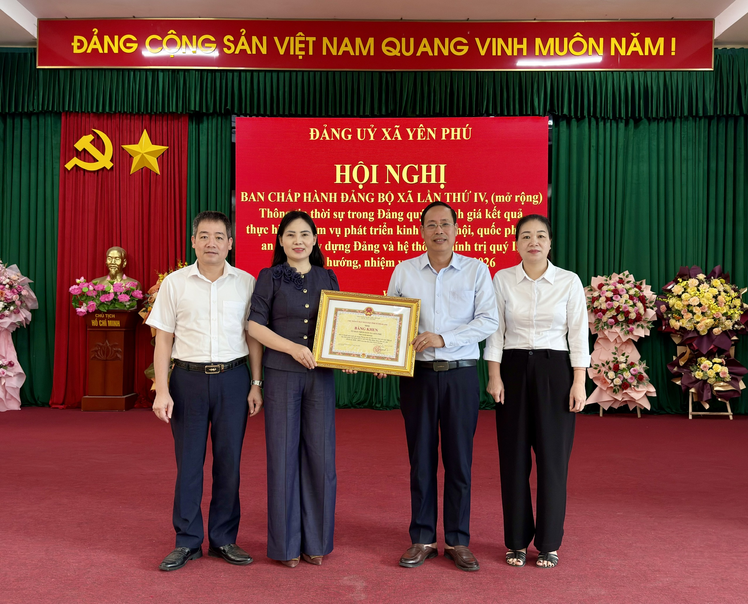 Đồng chí Âu Thị Mai trao Bằng khen cho Ủy ban nhân dân xã Yên Phú