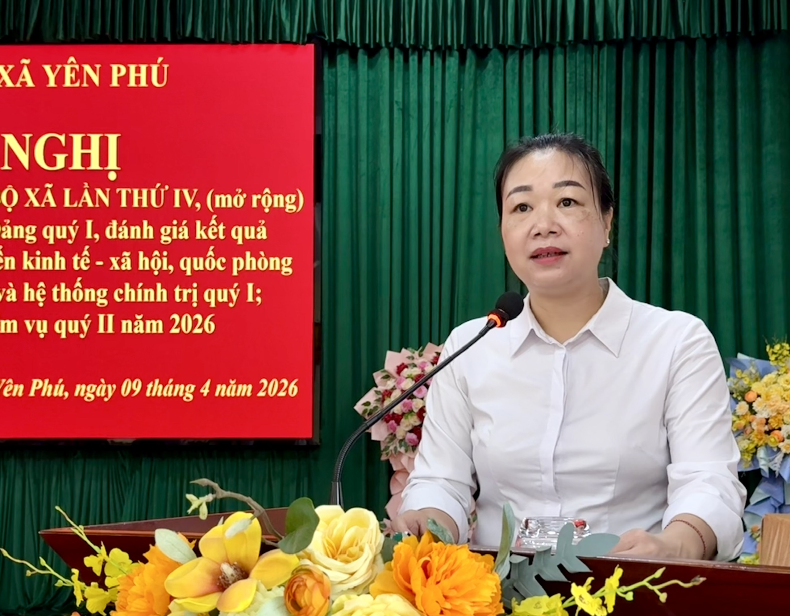 Đồng chí Âu Thị Mai, Ủy viên Ban Chấp hành Đảng bộ tỉnh, Chủ tịch Hội liên hiệp Phụ nữ tỉnh đã đánh giá cao các thành quả mà xã Yên Phú đã đạt được trong quý I năm 2026. Đồng chí đề nghị xã tiếp tục làm tốt công tác thu hút đầu tư, tập trung đôn đốc các nhà đầu tư giải quyết các vướng mắc trong đầu tư, kinh doanh. Đẩy mạnh công tác giải quyết đơn thư khiếu nại, tố cáo. Làm tốt công tác phòng, chống lãng phí, tiêu cực. Tăng cường công tác của Mặt trận Tổ quốc và các tổ chức chính trị - xã hội nhằm tăng sự đoàn kết, thống nhất trong nội bộ.