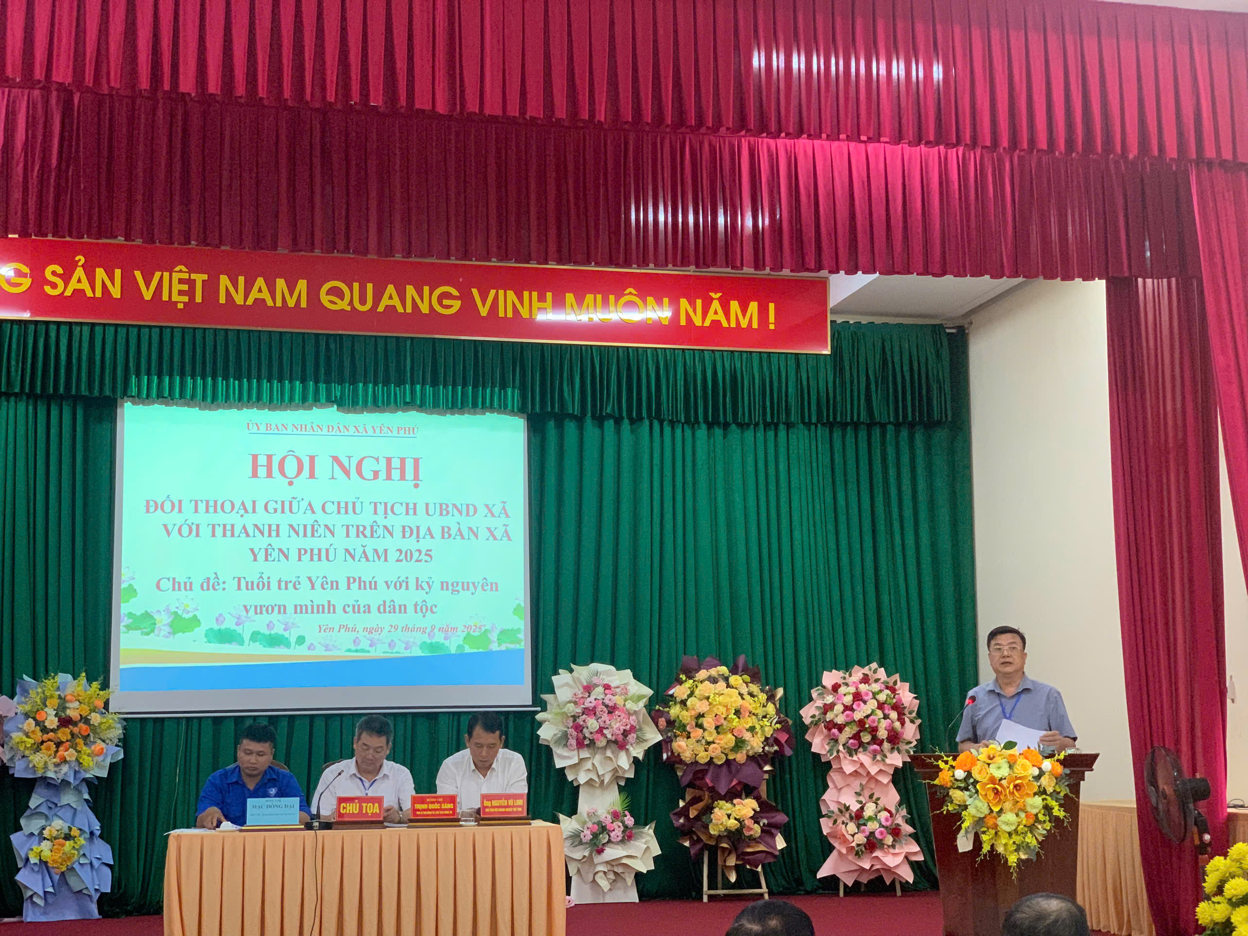 Ngày 29 tháng 9 năm 2025, tại Nhà văn hóa xã, UBND xã Yên Phú đã tổ chức Hội nghị đối thoại giữa Chủ tịch UBND xã với thanh niên trên địa bàn xã năm 2025 với chủ đề: “Tuổi trẻ Yên Phú với kỷ nguyên vươn mình của dân tộc”.