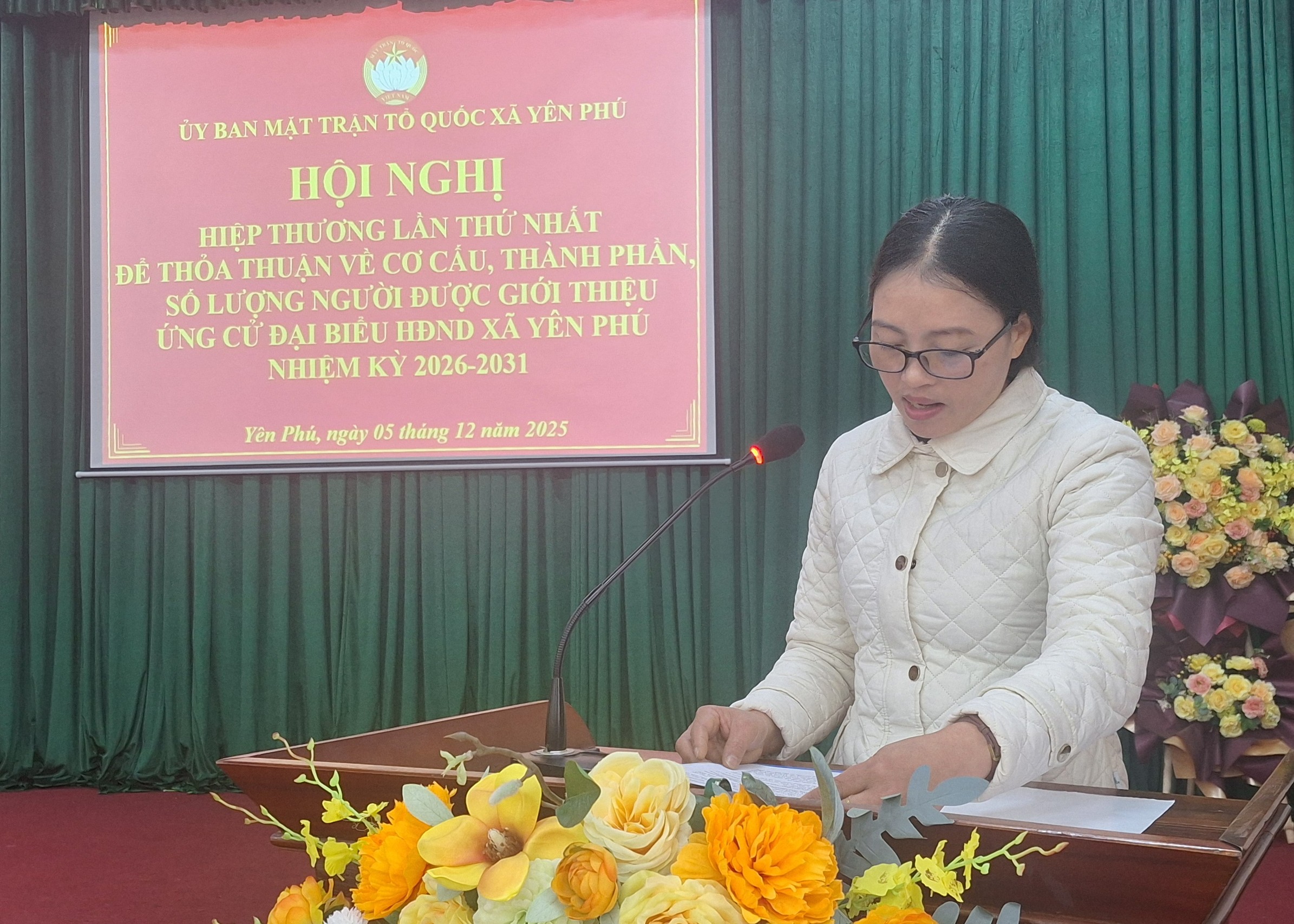 Tại hội nghị, đồng chí Phạm Thị Ngọc Quỳnh, Phó chủ tịch HĐND xã lên báo cáo dự kiến của Thường trực HĐND xã về cơ cấu, thành phần, số lượng đại biểu HĐND xã Yên Phú, nhiệm kỳ 2026 – 2031. Về số lượng