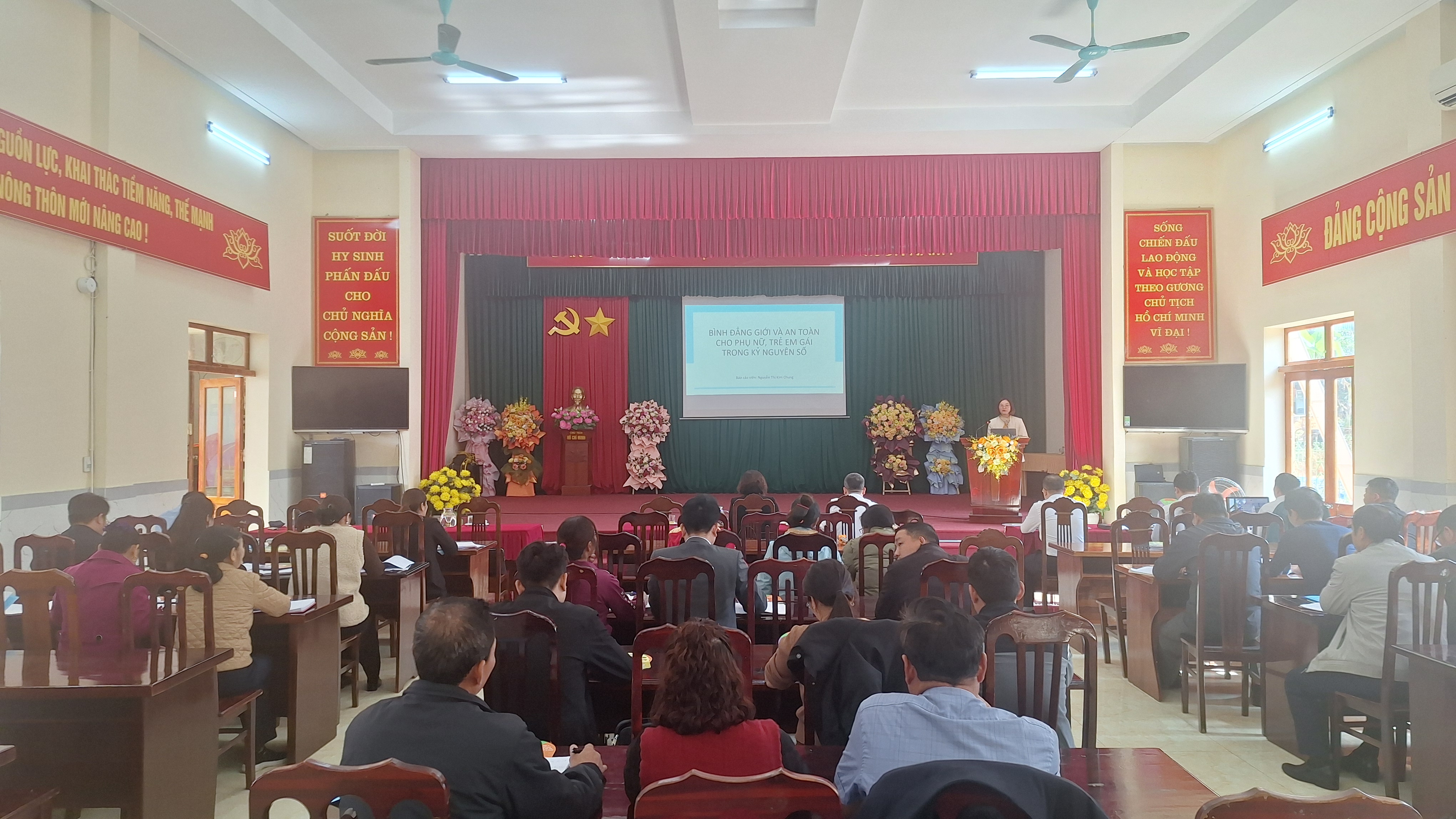 Trong buổi hội nghị tập huấn, báo cáo viên của Hội Luật gia tỉnh đã trình bày nội dung: Bình đẳng giới và an toàn cho phụ nữ, trẻ em gái trong kỷ nguyên số. Nhằm hỗ trợ trợ người dân và cán bộ thôn nhận diện định kiến giới; phòng ngừa, ứng phó với bạo lực trên cơ sở giới; và tăng cường kỹ năng an toàn số cho phụ nữ, trẻ em gái trong đời sống hằng ngày.