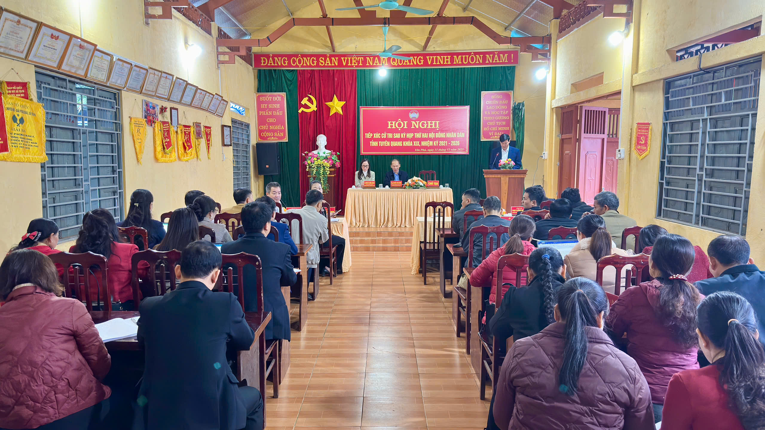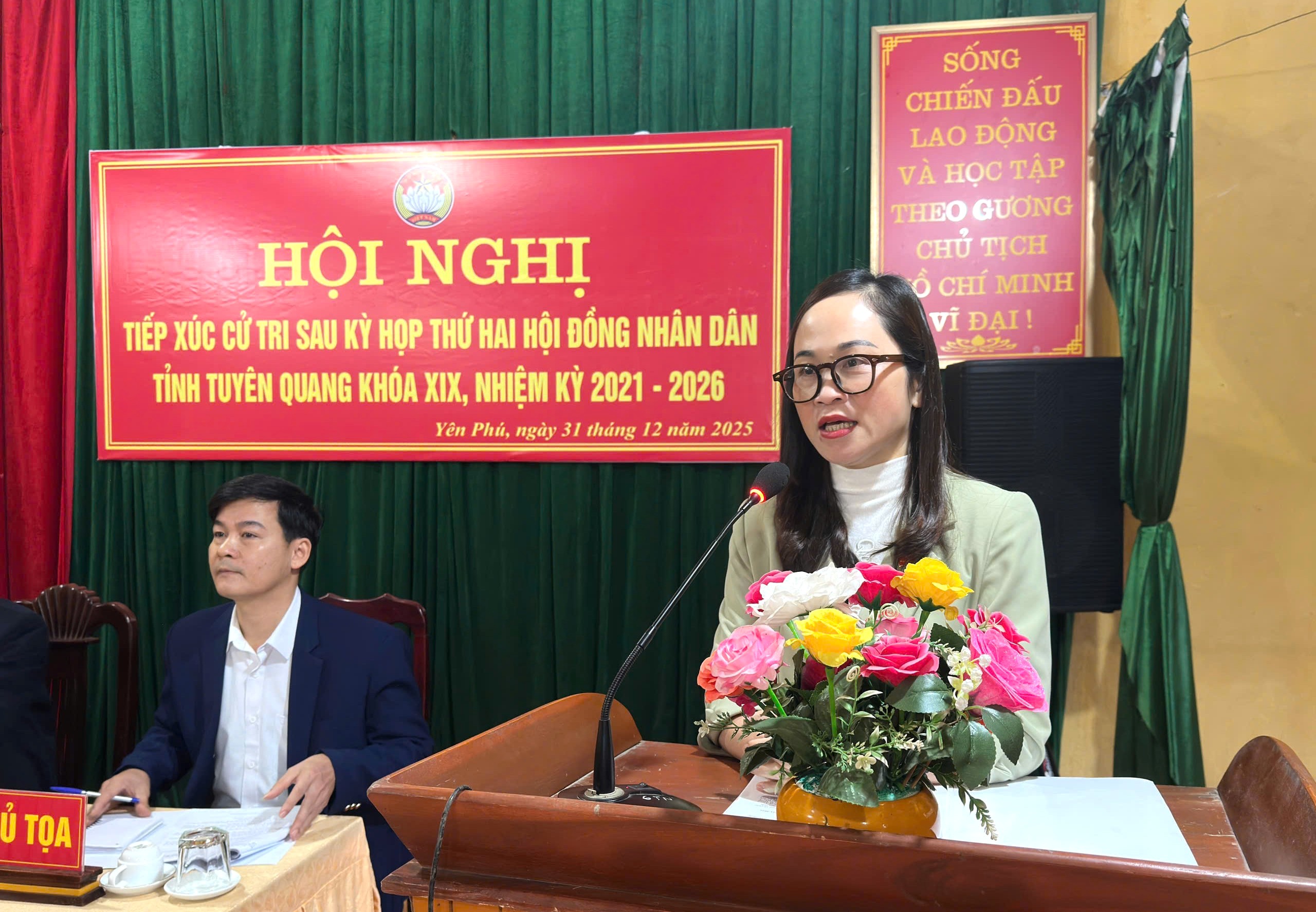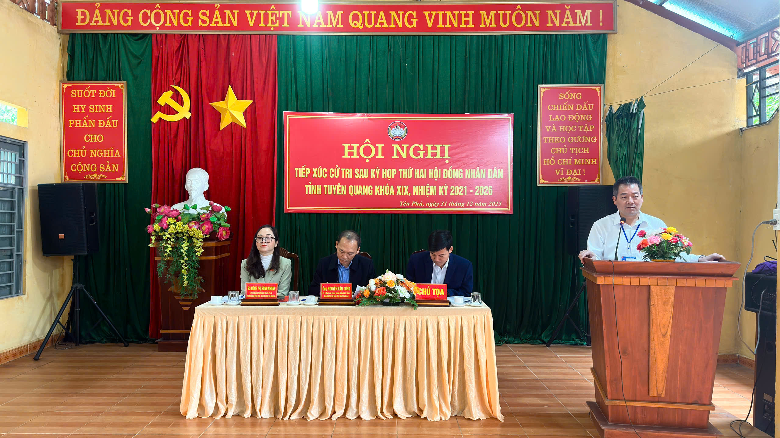 Tại hội nghị tiếp xúc, cử tri xã đã được nghe đại biểu Tổ số 03, đại biểu HĐND tỉnh báo cáo kết quả kỳ họp thứ hai Hội đồng nhân dân khoá XIX, nhiệm kỳ 2021-2026; thông tin đến cử tri các Nghị quyết đã được HĐND tỉnh ban hành; tuyên truyền về lịch trình bầu cử đại biểu Quốc hội và bầu cử HĐND các cấp, nhiệm kỳ 2026-2031; tuyên truyền Nghị quyết Đại hội đại biểu Đảng bộ tỉnh Tuyên Quang, nhiệm kỳ 2025-2030; kỷ niệm 80 năm ngày Tổng tuyển cử đầu tiên bầu Quốc hội Việt Nam; đại hội đại biểu toàn quốc lần thứ XIV của Đảng diễn ra từ ngày 19/01 đến 25/01/2026.