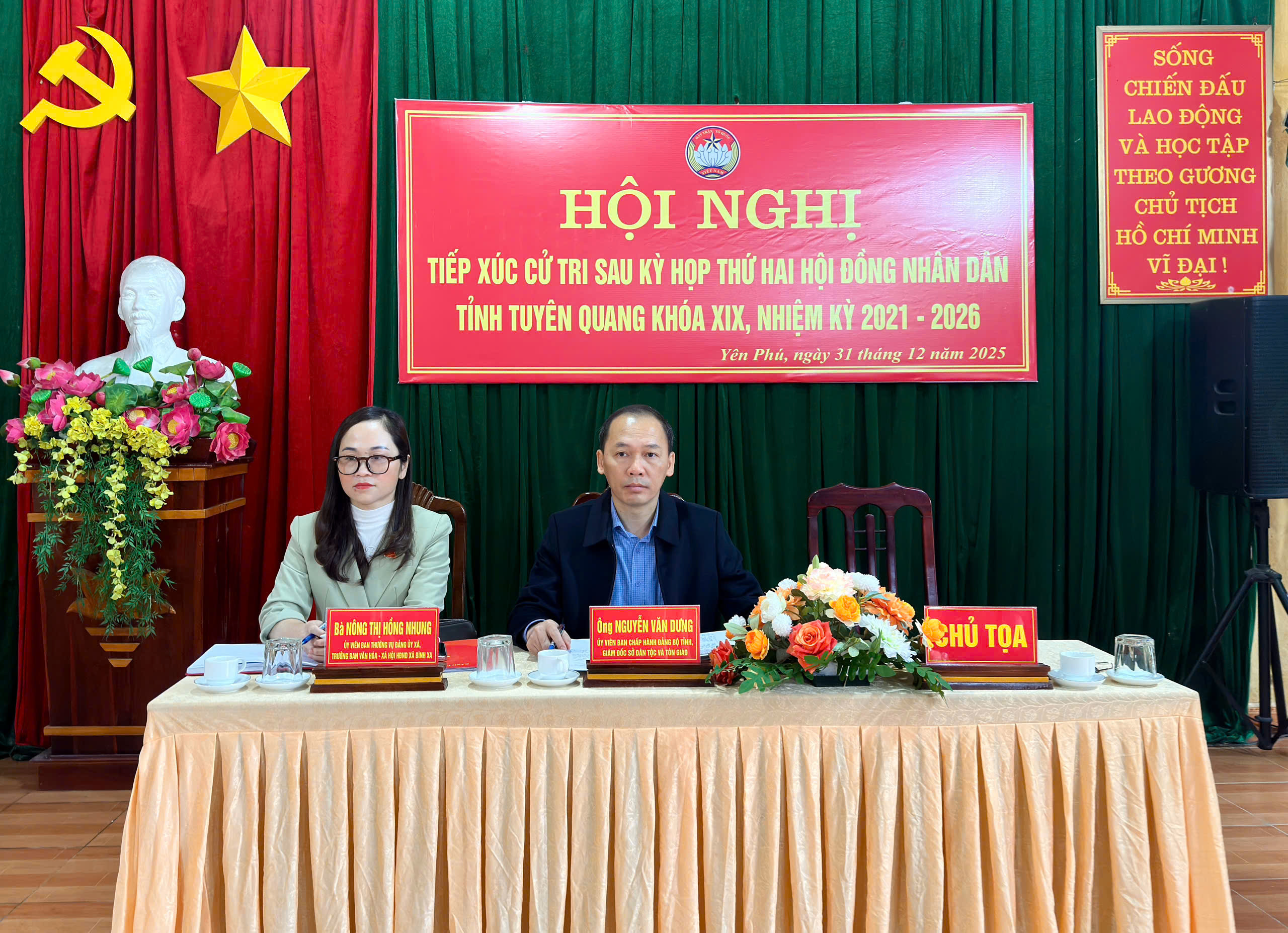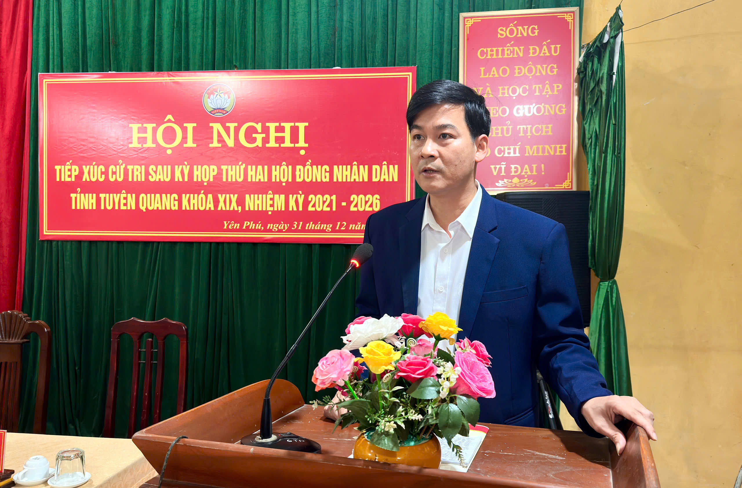 Phát biểu tại hội nghị, đồng chí Nguyễn Văn Dưng, Uỷ viên Ban Chấp hành Đảng bộ tỉnh, Giám đốc Sở Dân tộc và Tôn giáo đã ghi nhận, đánh giá cao tinh thần trách nhiệm, thẳng thắn của cử tri; đồng chí nhấn mạnh tỉnh Tuyên Quang sẽ tiếp tục triển khai thực hiện các chương trình mục tiêu Quốc gia về xây dựng Nông thôn mới, Chương trình phát triển kinh tế - xã hội vùng đồng bào dân tộc thiểu số; và một số mục tiêu về văn hoá, giáo dục, y tế.