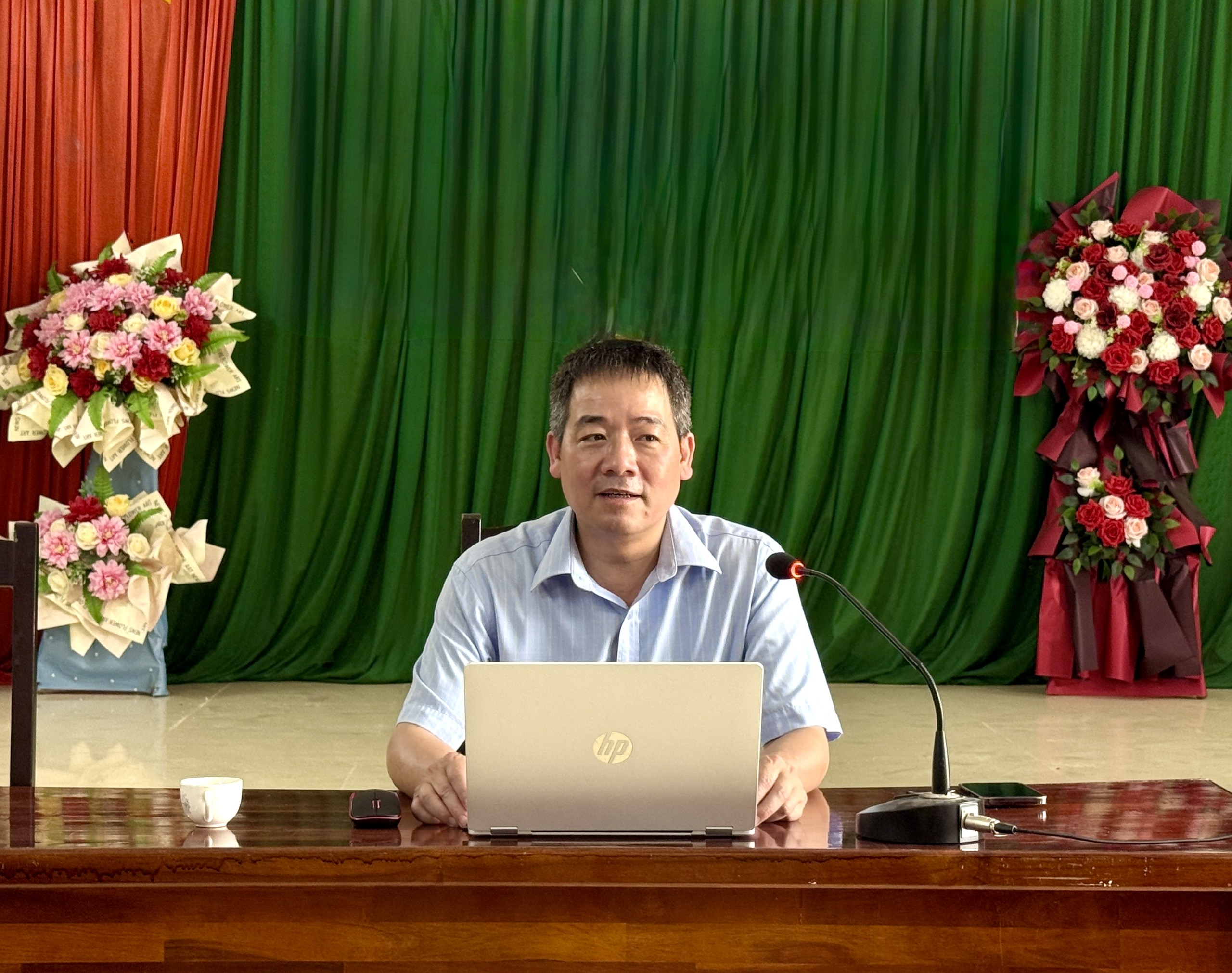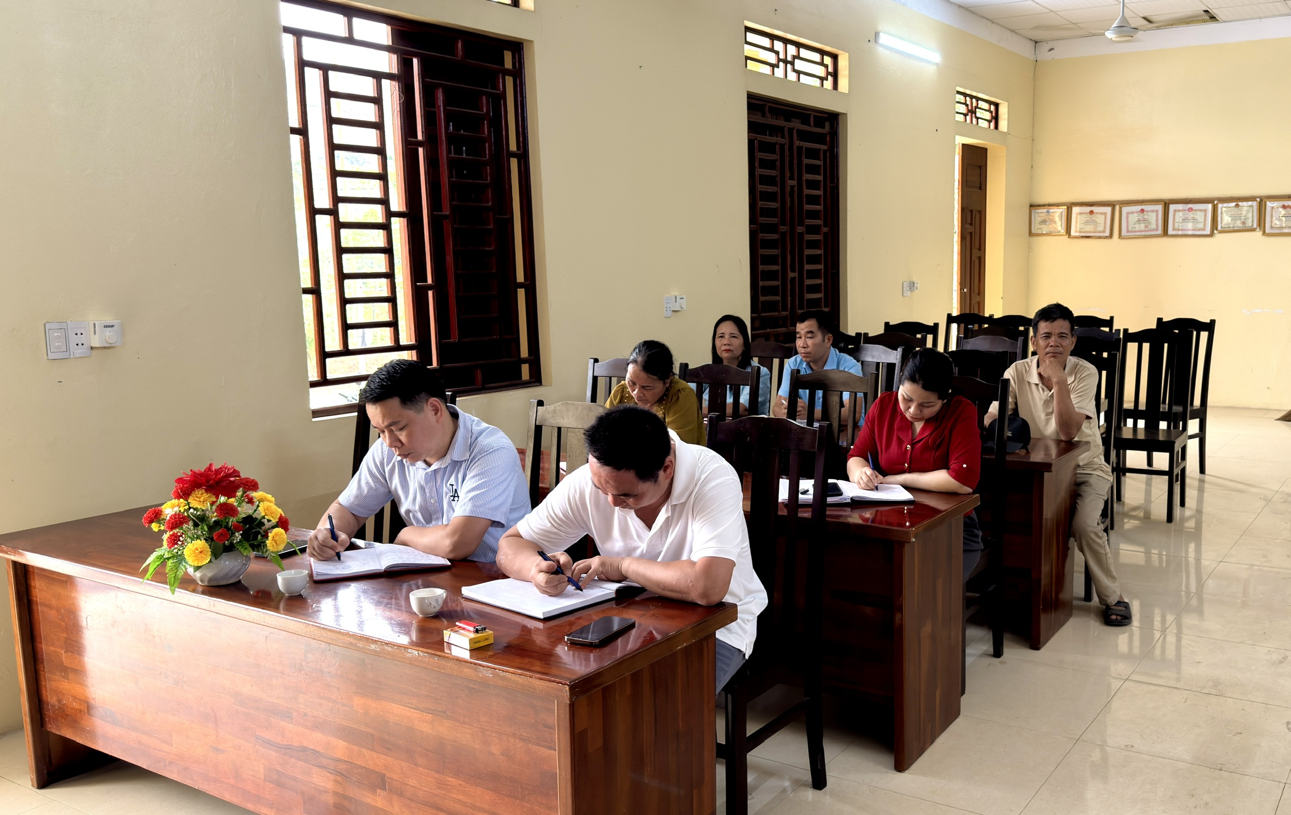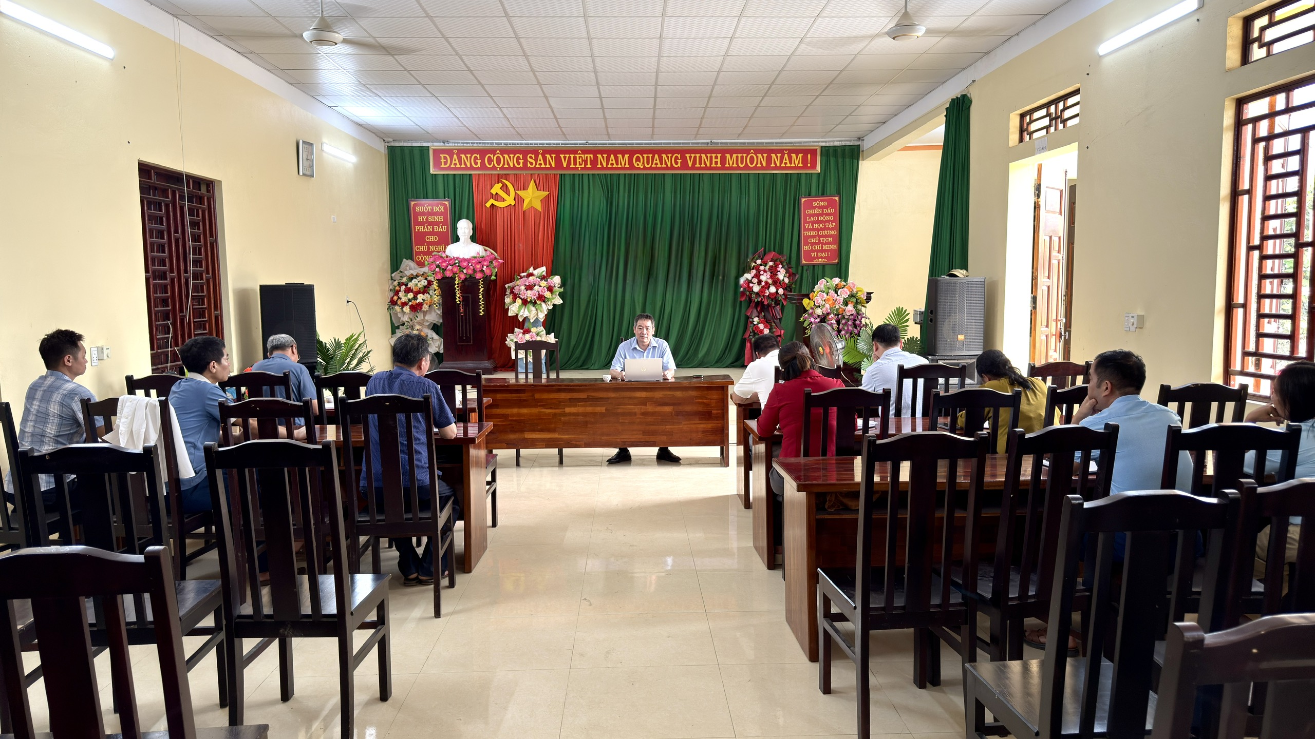 Đồng chí Trịnh Quốc Sáng, Phó Bí thư Đảng uỷ, Chủ tịch UBND xã chủ trì cuộc họp
