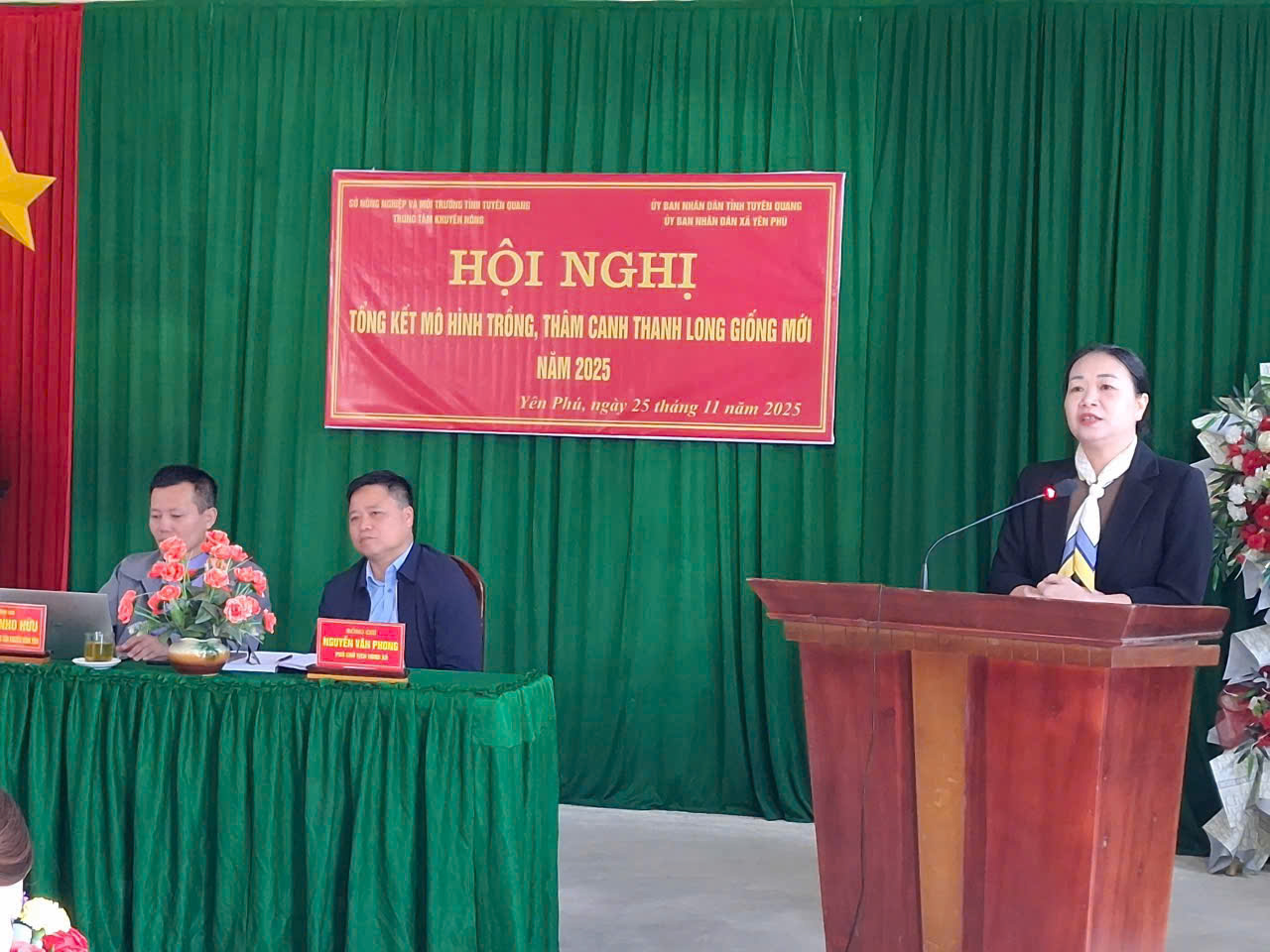 Ngày 25 tháng 11 năm 2025, Trung tâm Khuyến nông tỉnh phối hợp với Ủy ban nhân dân xã Yên Phú tổ chức Hội nghị tổng kết mô hình trồng, thâm canh Thanh Long giống mới (năm 2025) trên địa bàn xã. Tham dự hội nghị có đại diện lãnh đạo Trung tâm Khuyến nông tỉnh; lãnh đạo Đảng ủy, Hội đồng nhân dân, Ủy ban nhân dân, Ủy ban Mặt trận Tổ quốc và các tổ chức chính trị - xã hội, các phòng chuyên môn của xã cùng các hộ nông dân tham gia mô hình.