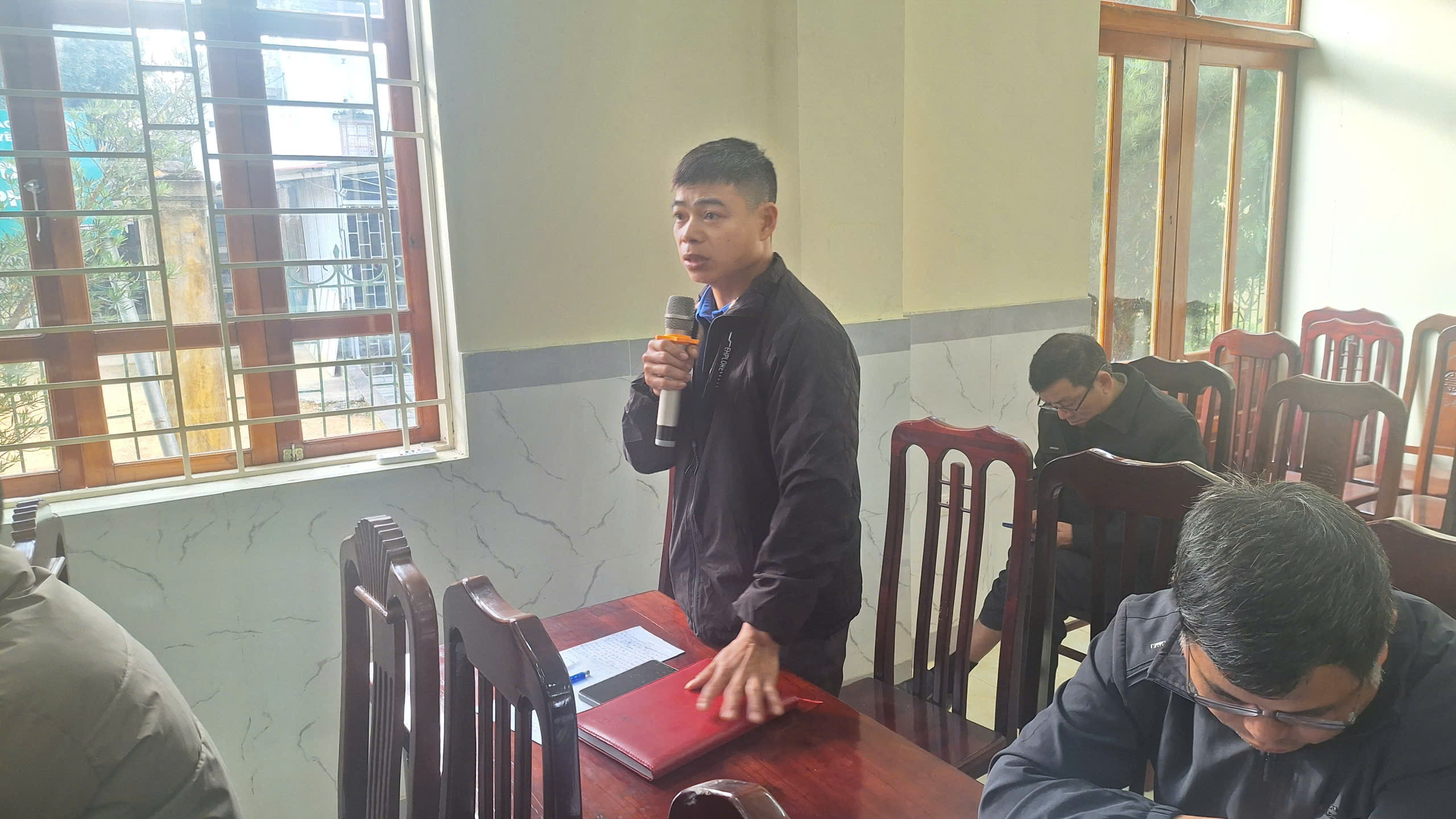 (đồng chí Trịnh Quốc Sáng, Phó Bí thư Đảng ủy, Chủ tịch UBND xã trao đổi, giải trình, làm rõ ý kiến của cử tri)