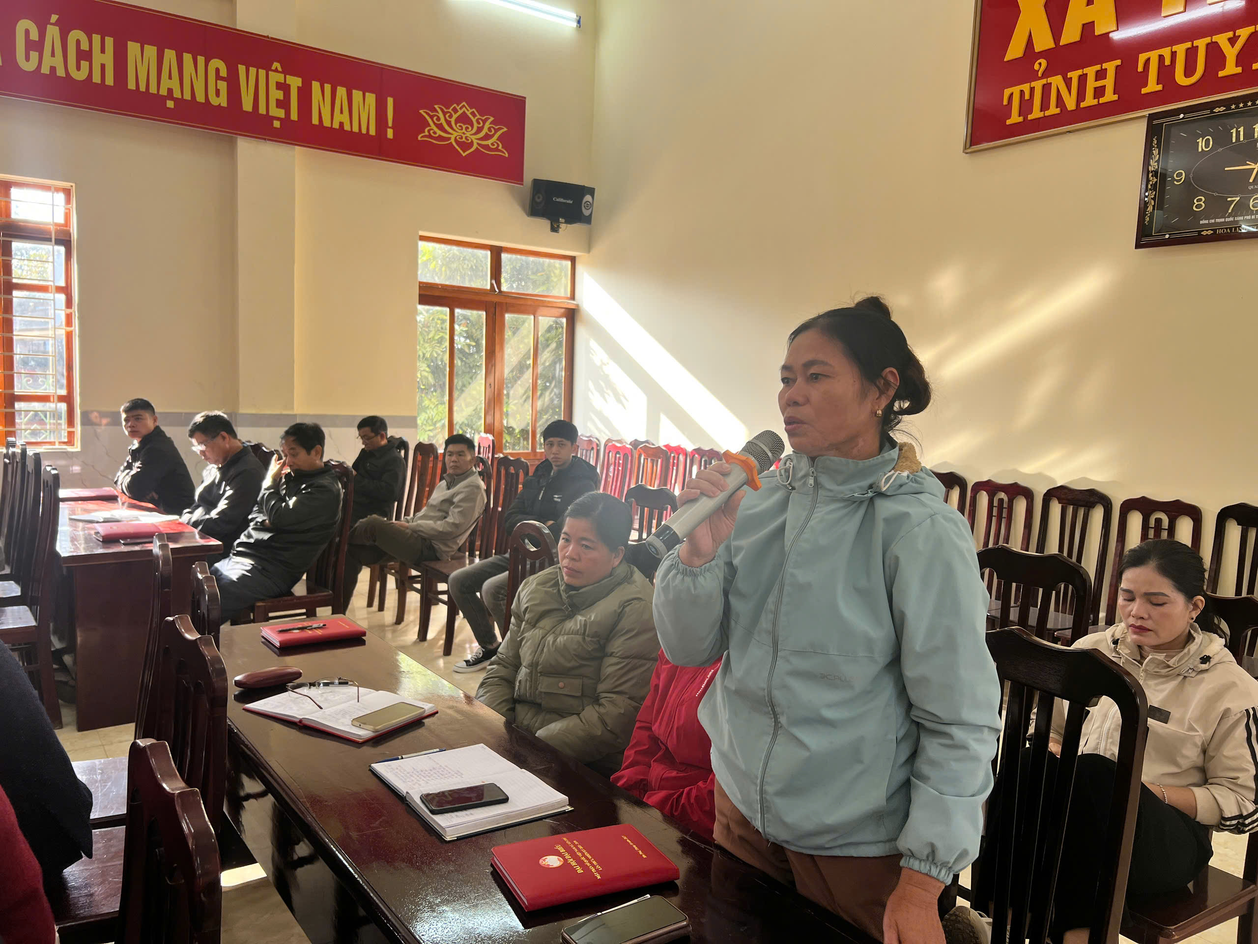 (đồng chí Nguyễn Thị Hồng Ngoan, Phó Bí thư Đảng ủy, Chủ tịch HĐND xã tiếp thu ý kiến, kiến nghị của cử tri)