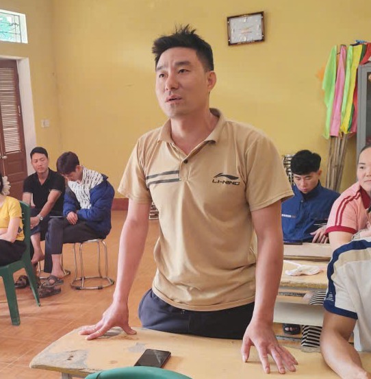Đồng chí Nguyễn Văn Phong, Phó Chủ tịch Uỷ ban nhân dân xã phát biểu tại hội nghị