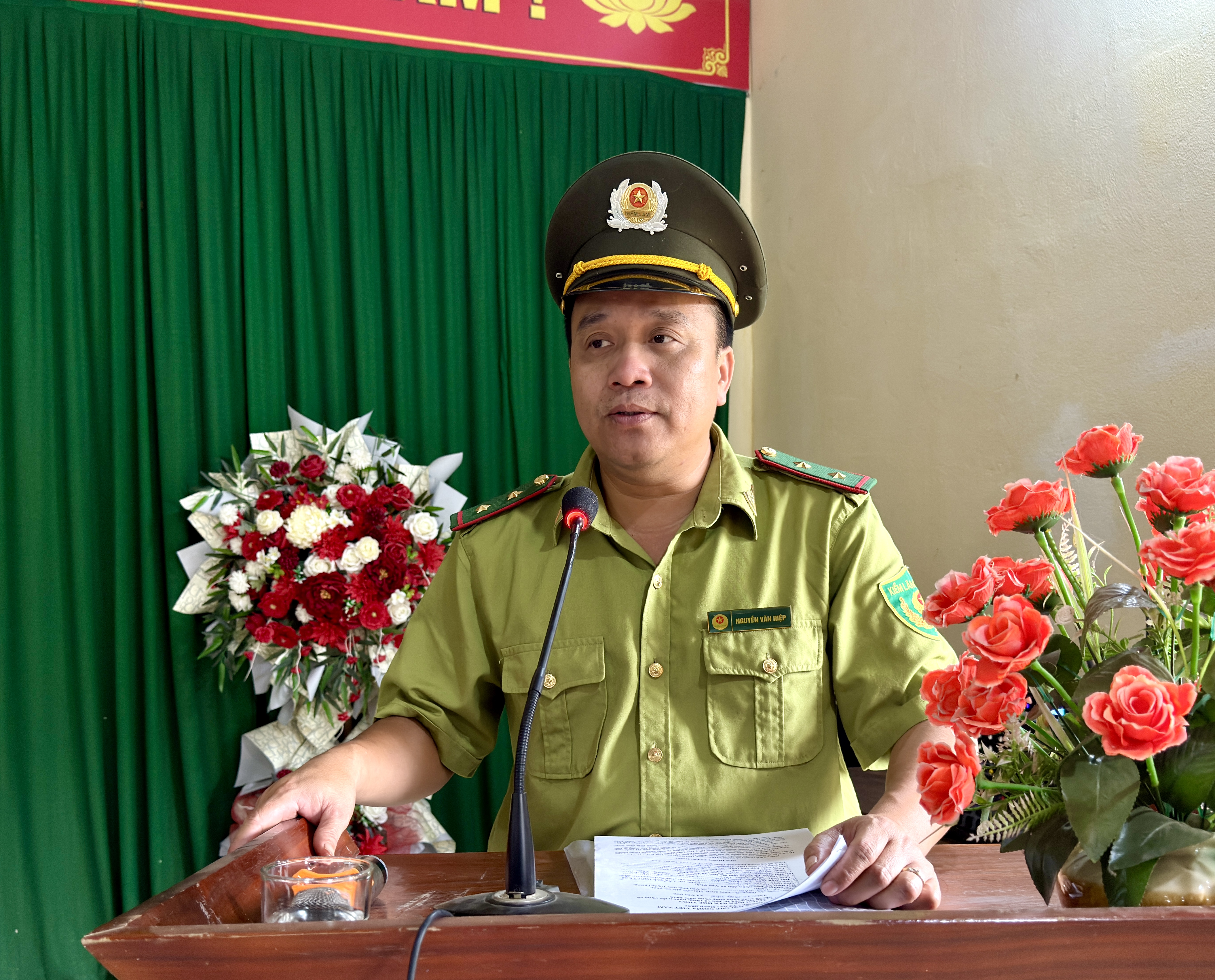 Đồng chí Nguyễn Văn Hiệp, Kiểm lâm viên Tổ Kiểm lâm địa bàn xã Yên Phú tuyên truyền tại hội nghị
