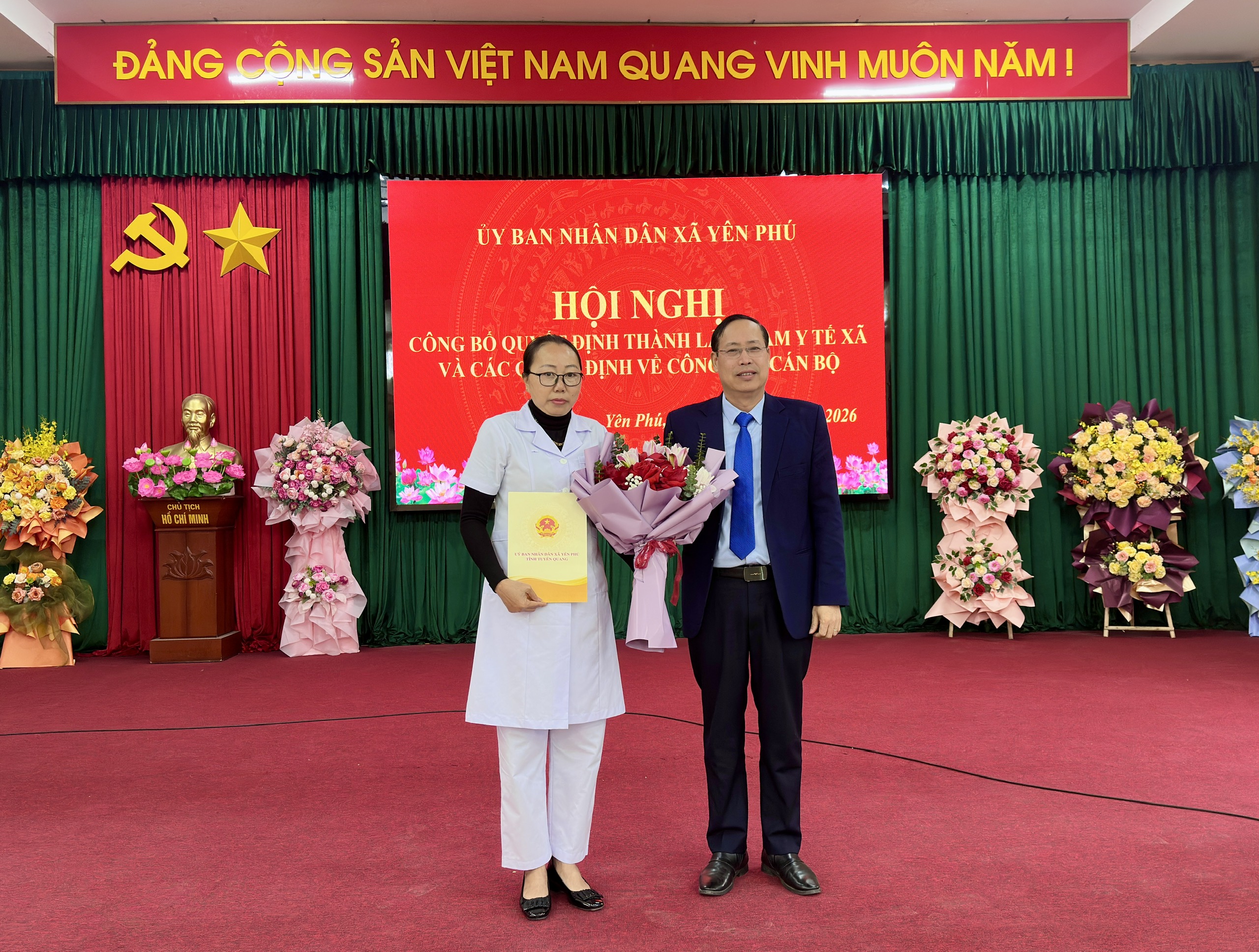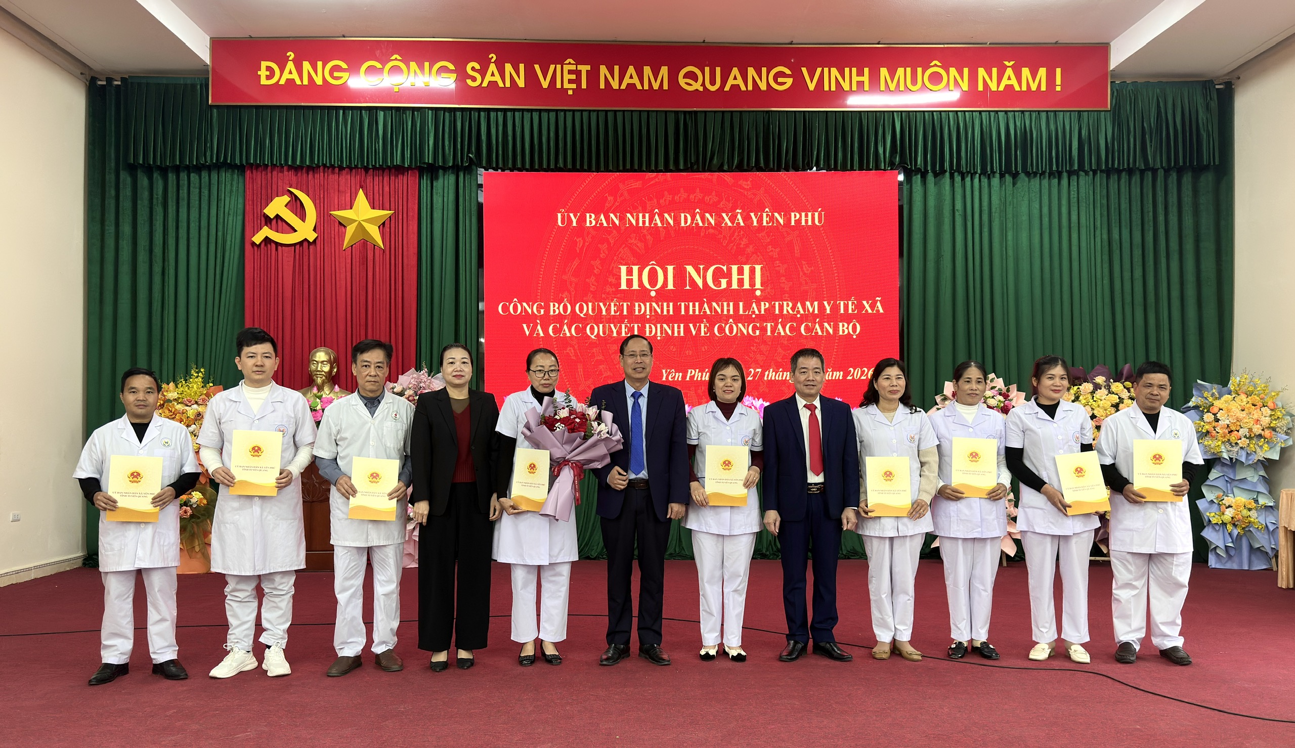 Tại hội nghị, đồng chí Nguyễn Văn Sơn, Trưởng Phòng văn hóa đã công bố Quyết định thành lập Trạm Y tế xã Yên Phú trên cơ sở thực hiện mô hình chính quyền địa phương 2 cấp, nhằm kiện toàn tổ chức bộ máy, đáp ứng yêu cầu chăm sóc, bảo vệ và nâng cao sức khỏe Nhân dân trên địa bàn.