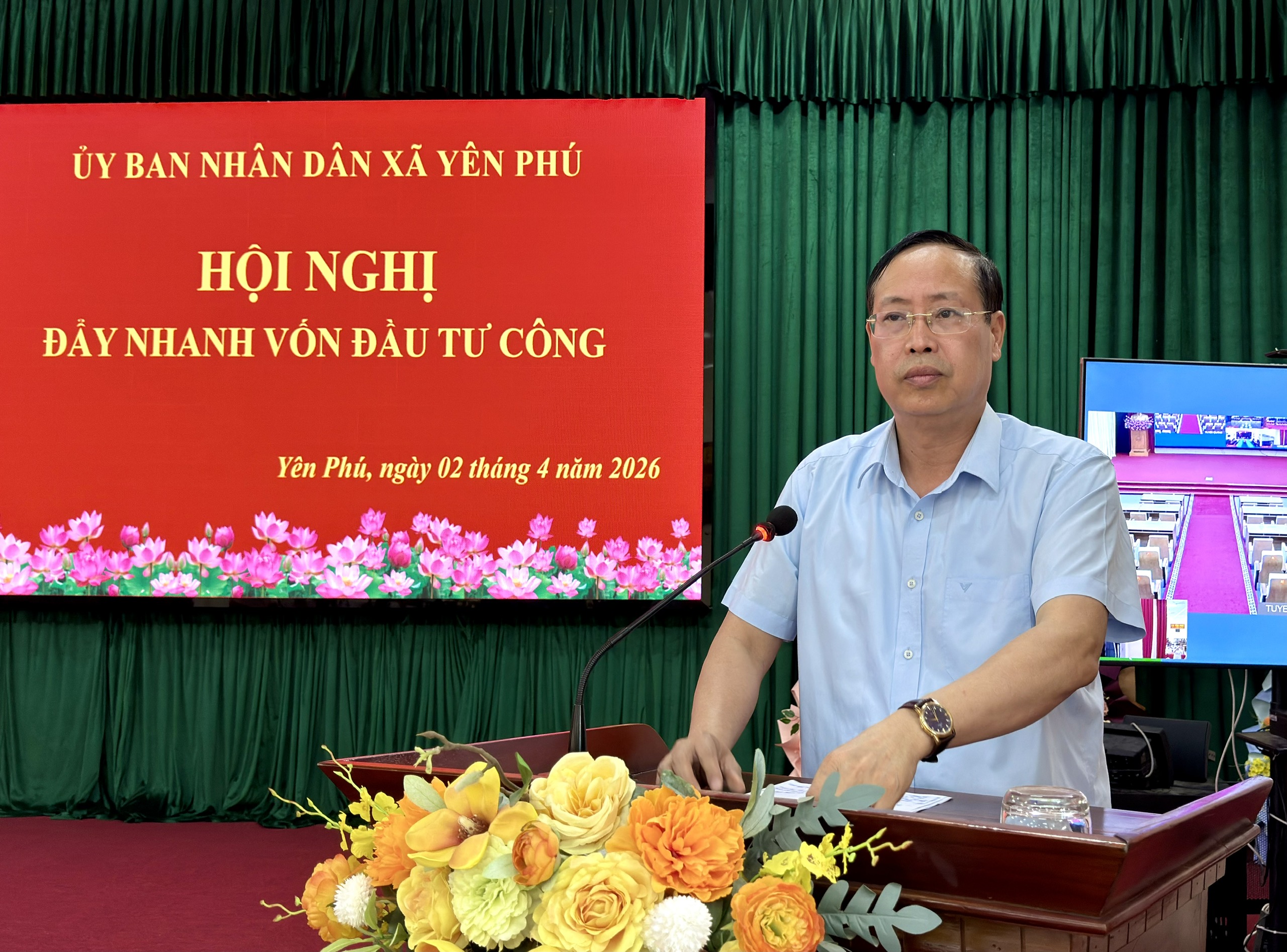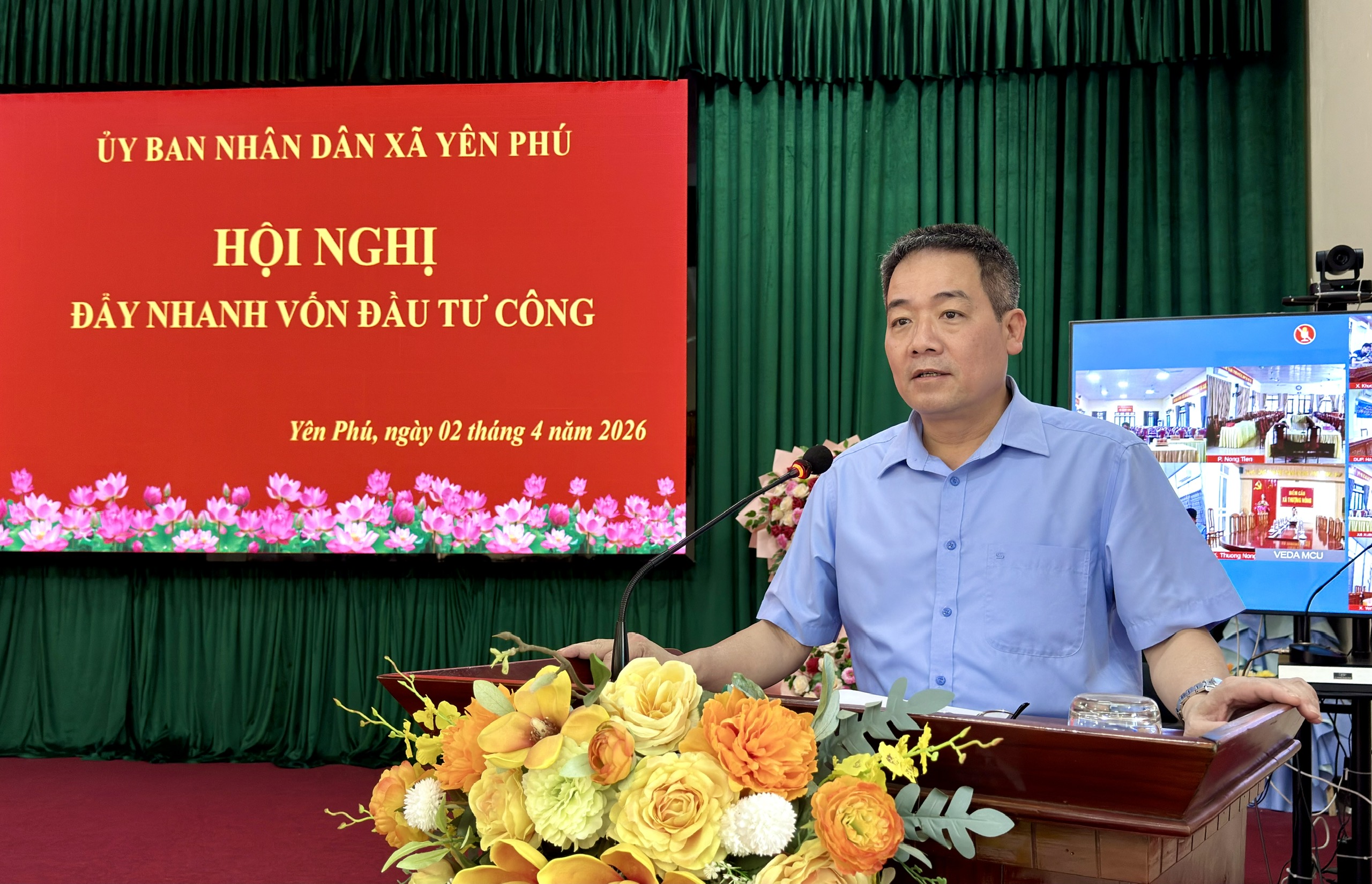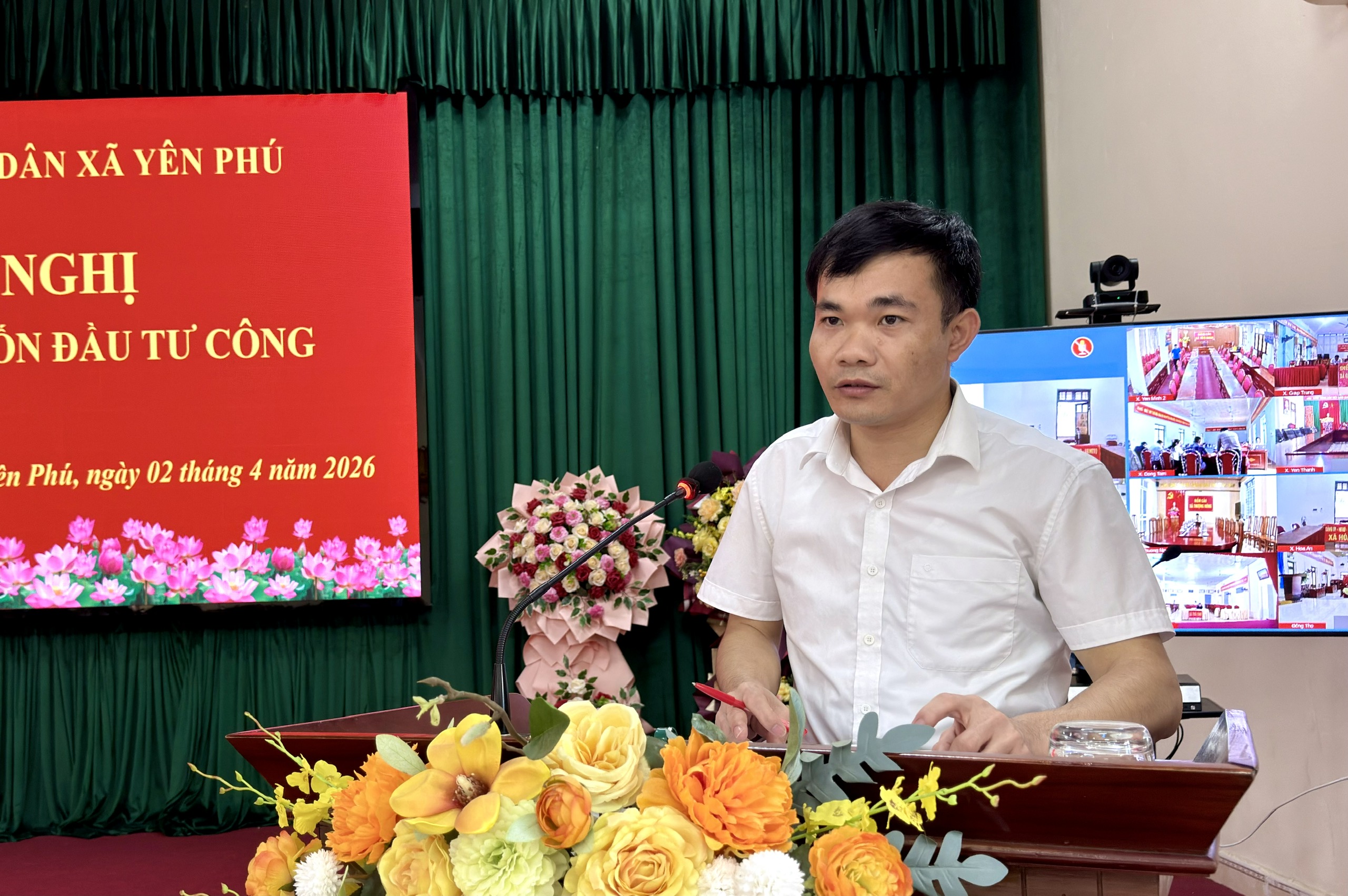 Phát biểu khai mạc hội nghị, đồng chí Trịnh Quốc Sáng, Phó Bí thư Đảng ủy, Chủ tịch Ủy ban nhân dân xã Yên Phú, Chủ trì hội nghị đã nêu nội dung chính của buổi làm việc, tập trung chủ đạo vào các việc như: Kiểm điểm tiến độ thi công, các công trình đã hoàn thành chưa quyết toán thuộc các công trình chuyển tiếp do Ủy ban nhân dân cấp huyện làm chủ đầu tư chuyển về cấp xã. Kiểm điểm tiến độ giải ngân vốn đầu tư công năm 2026 và nguồn vốn đầu tư công chuyển nguồn năm trước sang năm 2026 thực hiện (nếu có).