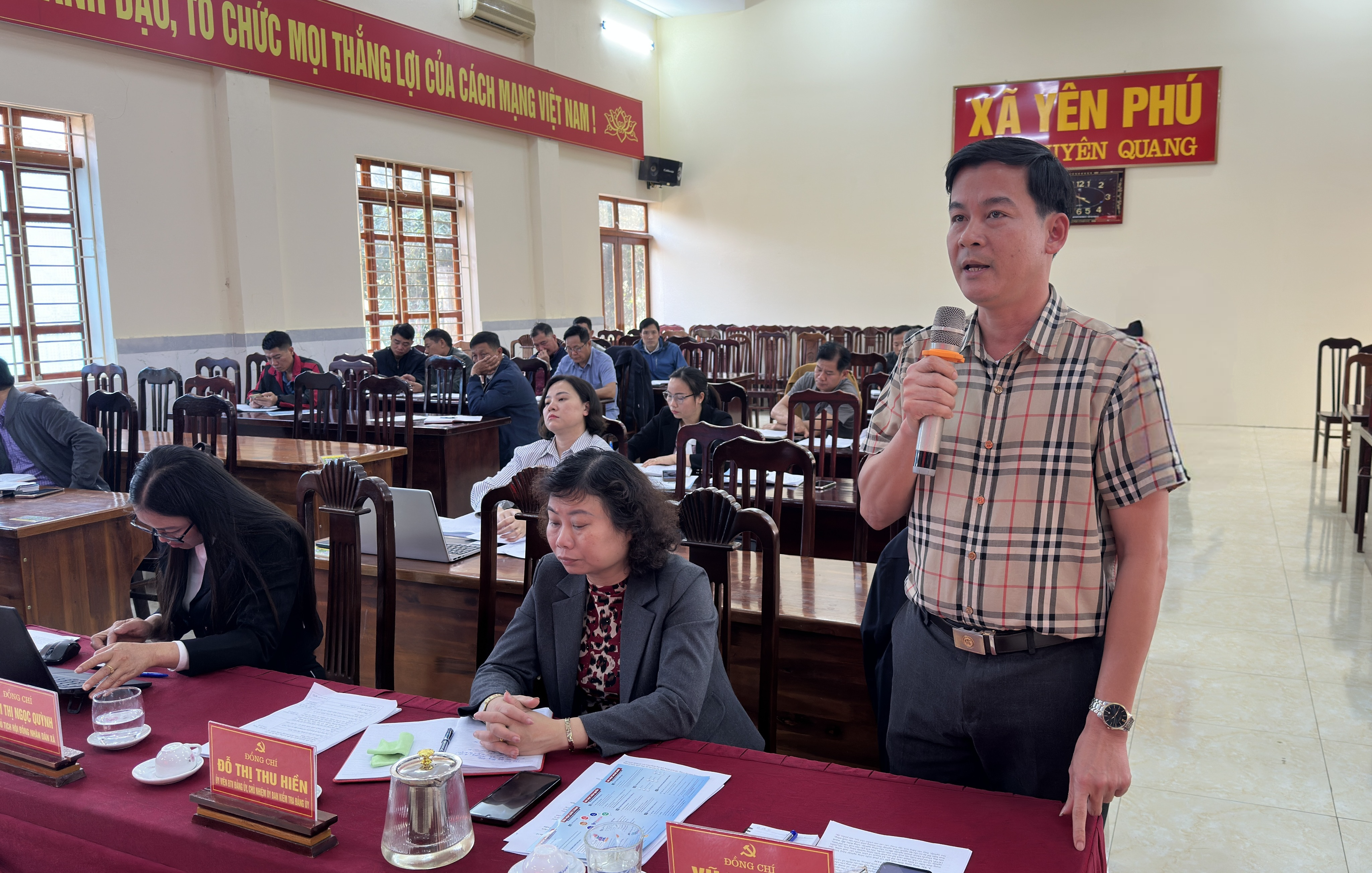 Đồng chí Nguyễn Văn Bằng, Chánh Văn phòng và HĐND xã báo cáo tại phiên họp