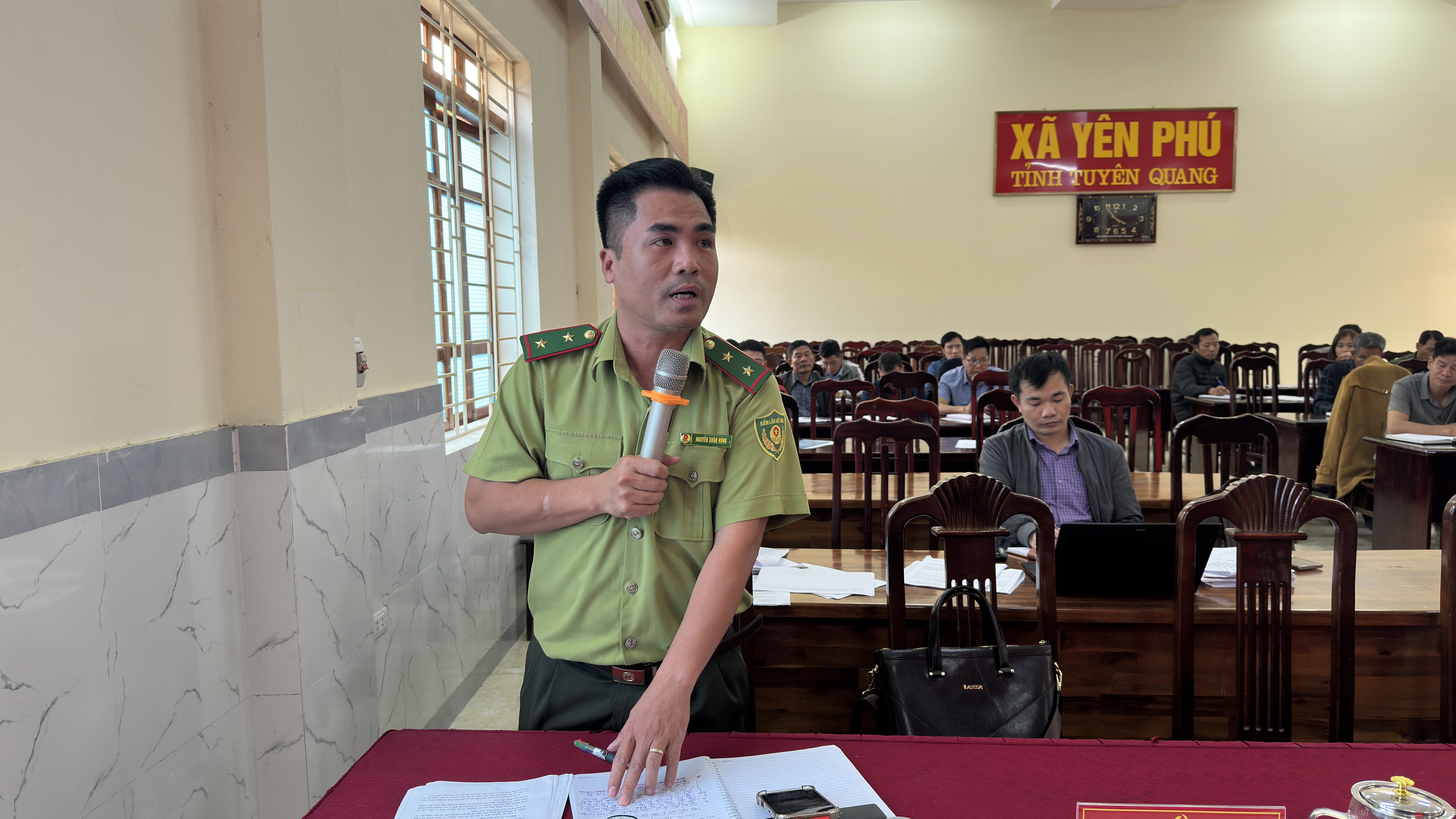 Đồng chí Nguyễn Xuân Hùng, Tổ trưởng tổ kiểm lâm địa bàn xã Yên Phú phát biểu ý kiến
