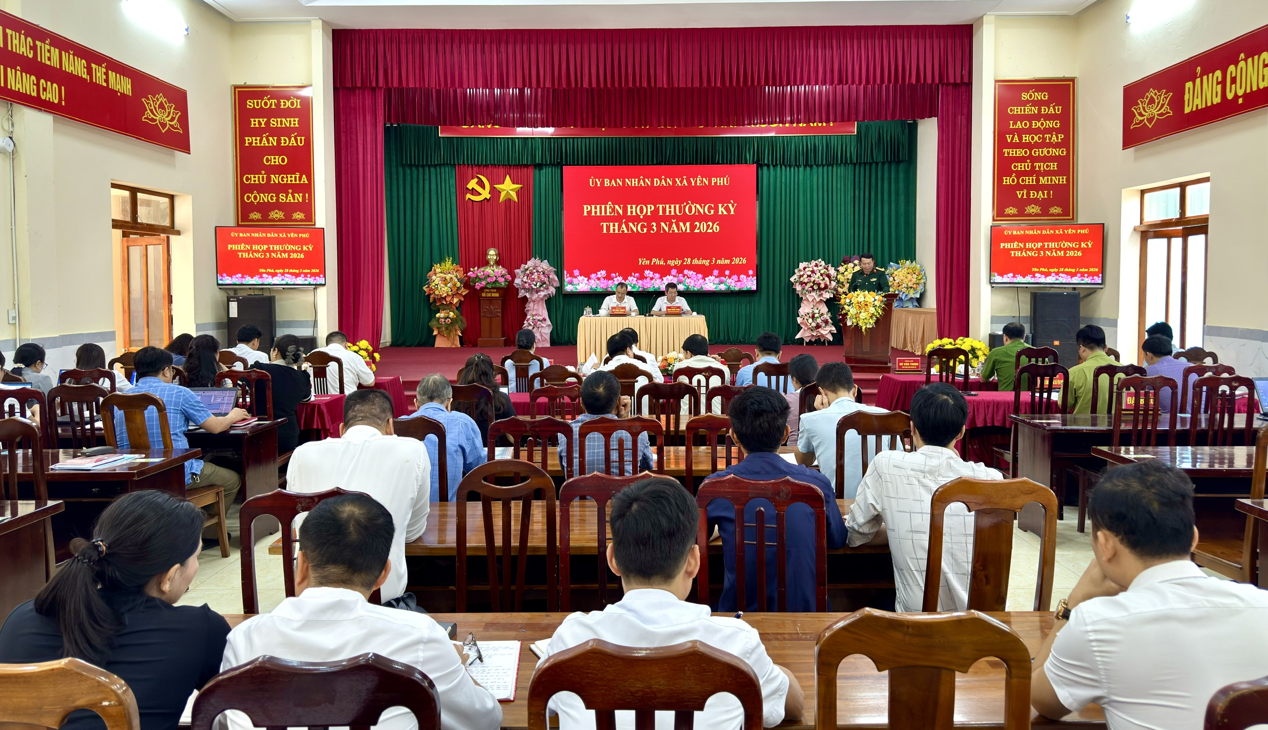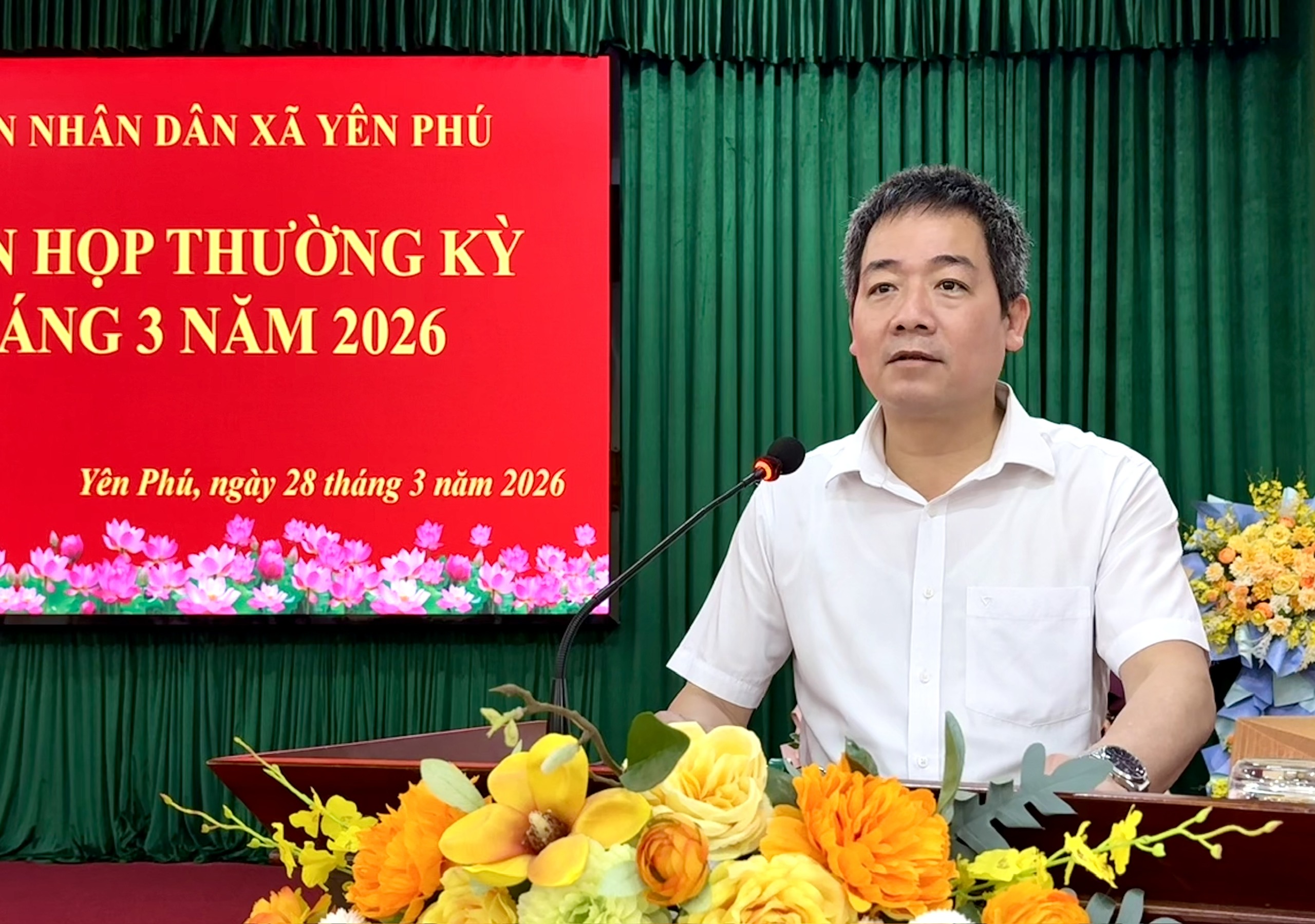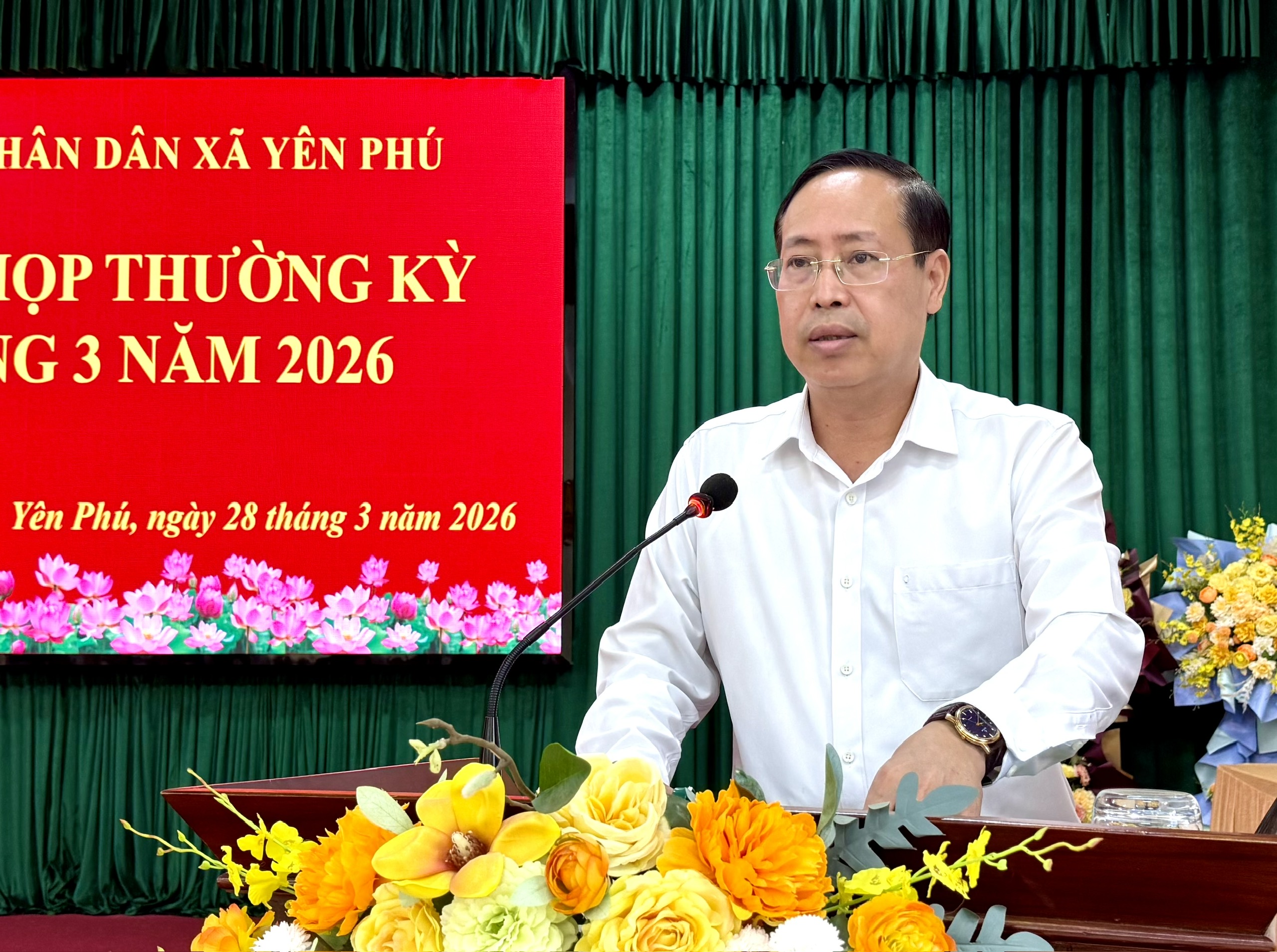 Phát biểu chỉ đạo kỳ họp, đồng chí Nguyễn Văn Ước, Bí thư Đảng uỷ xã đã khen ngợi các kết quả đạt được trong tháng 3 và quý I năm 2026, đồng thời chỉ ra những tồn tại, hạn chế cần khắc phục. Khẩn trương triển khai các chỉ tiêu, nhiệm vụ phát triển kinh tế - xã hội. Đề nghị các phòng, ban, cơ quan, đơn vị xây dựng kế hoạch, yêu cầu rõ người, rõ việc, rõ thời gian, rõ tiến độ, rõ trách nhiệm. Tổ chức tốt kỳ họp Hội đồng nhân dẫn xã Yên Phú khoá VI, lần thứ nhất, được diễn ra vào ngày 30/3/2026. Tăng cường công tác quản lý rừng, đất đai, kịp thời phát hiện các trường hợp vi phạm và xử lý. Tiếp tục quan tâm tới công tác cải cách hành chính và chuyển đổi số, nâng cao chất lượng cán bộ, công chức, viên chức. Đẩy mạnh giải ngân vốn đầu tư công.
