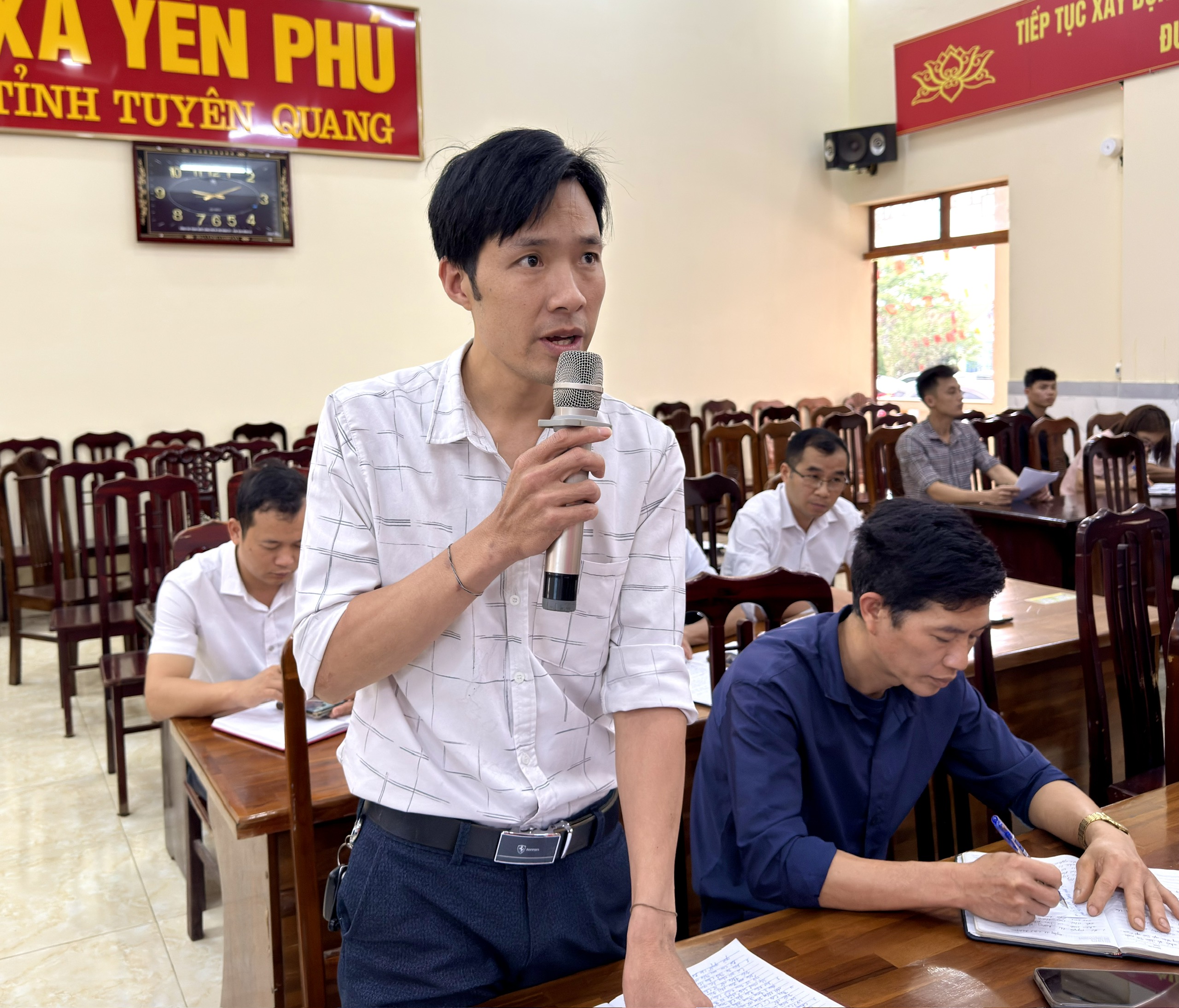 Đồng chí Nguyễn Văn Ước, Bí thư Đảng uỷ xã Yên Phú phát biểu chỉ đạo tại kỳ họp