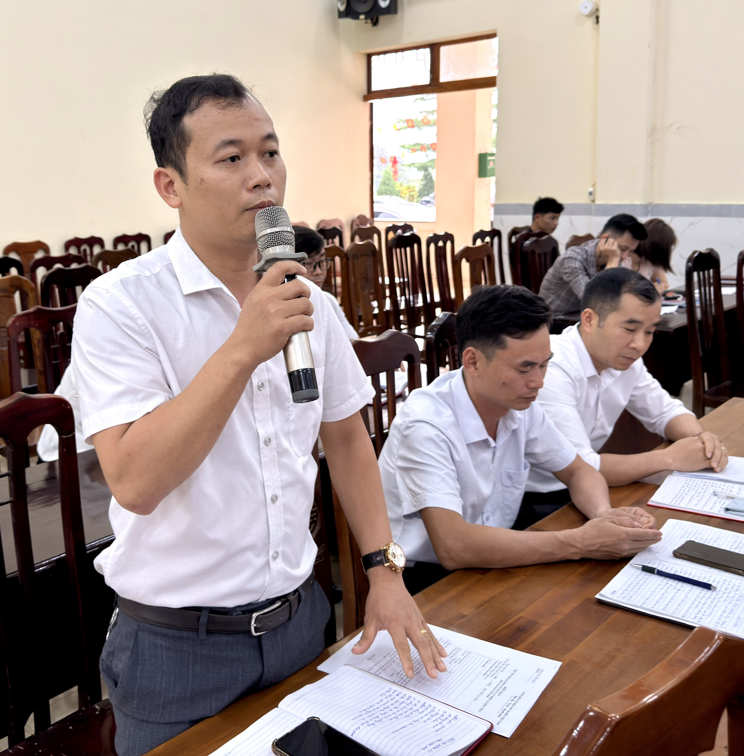 Đồng chí Trịnh Quốc Sáng, Phó Bí thư Đảng uỷ, Chủ tịch Uỷ ban nhân dân xã quán triển mục đích yêu cầu kỳ họp