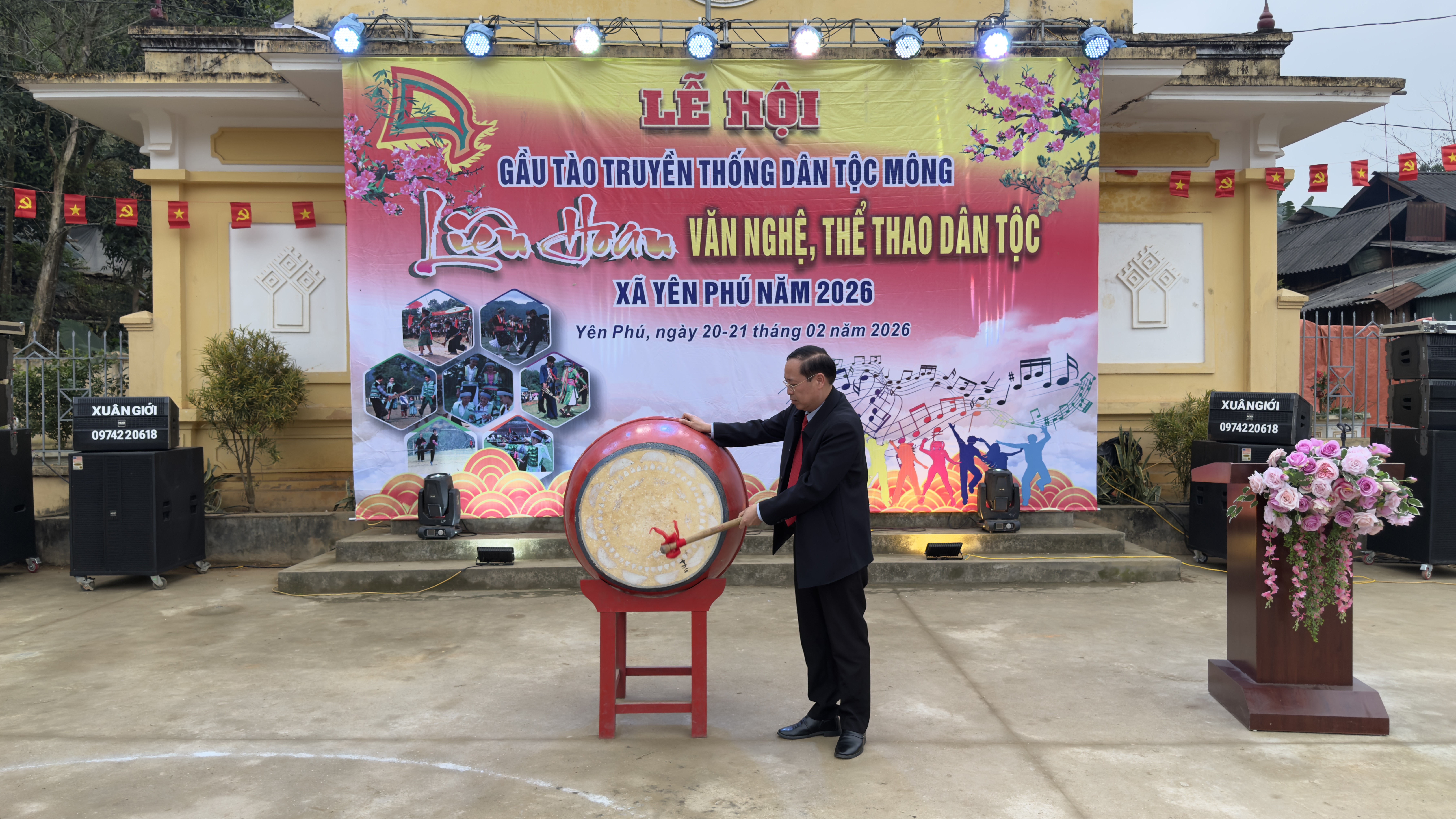 Đồng chí Nguyễn Văn Ước, Bí thư Đảng uỷ xã đánh trống khai hội