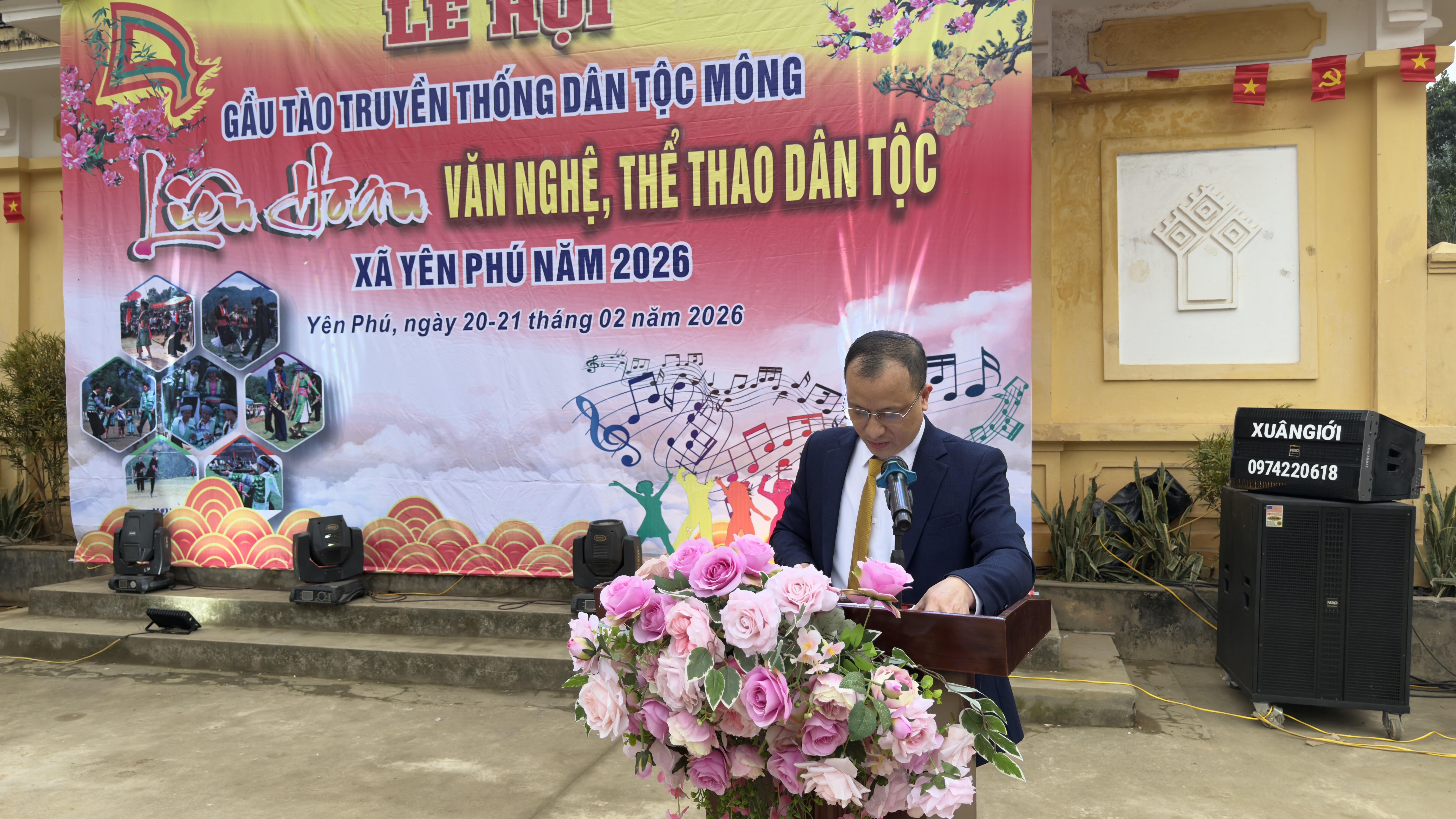 Đồng chí Vũ Văn Thịnh, Phó Chủ tịch UBND xã, Trưởng ban tổ chức Lễ hội phát biểu khai mạc Lễ hội